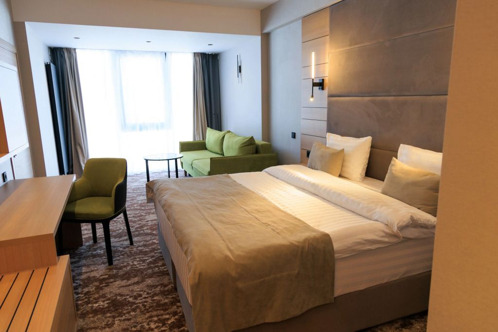 Помимо уютной кровати и прекрасного вида из окна, вас ждет: массажный кабинет, сауна, спа-центр, баня и хамам. Для любителей зимних видов спорта: прокат лыжной экипировки и сноуборд. Побаловать себя водными процедурами возможно в бассейне.