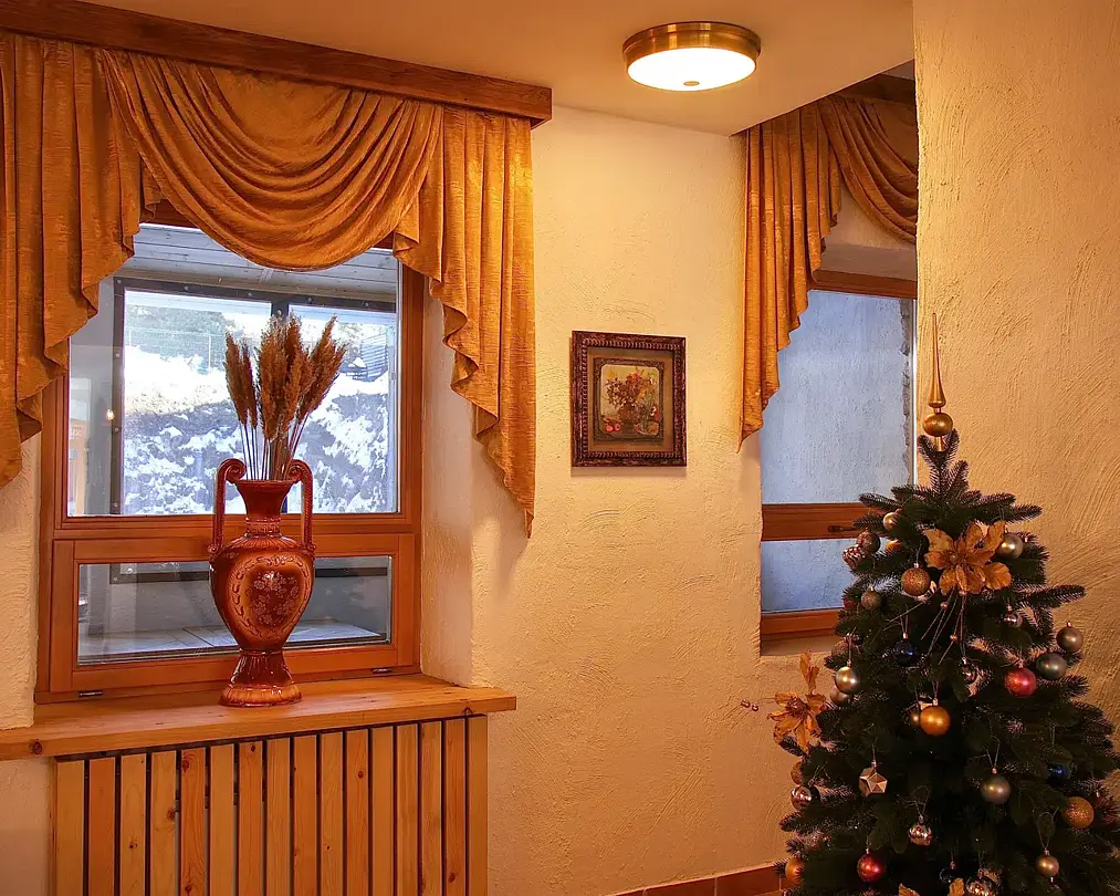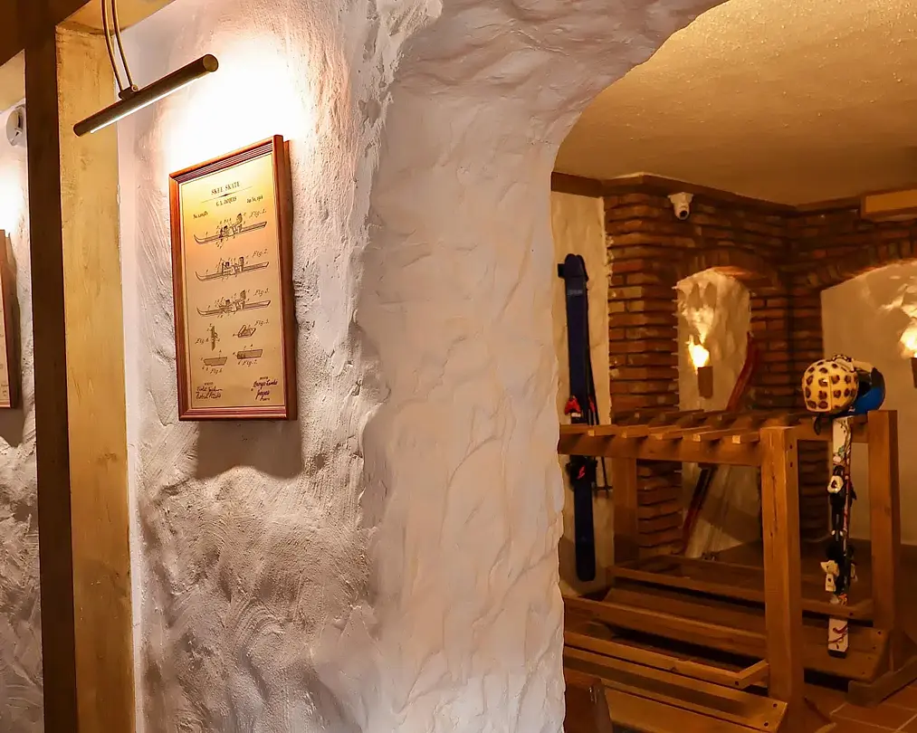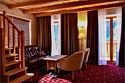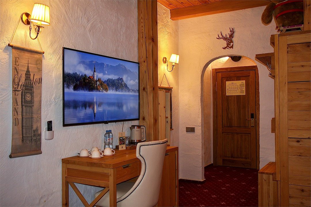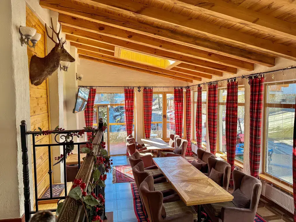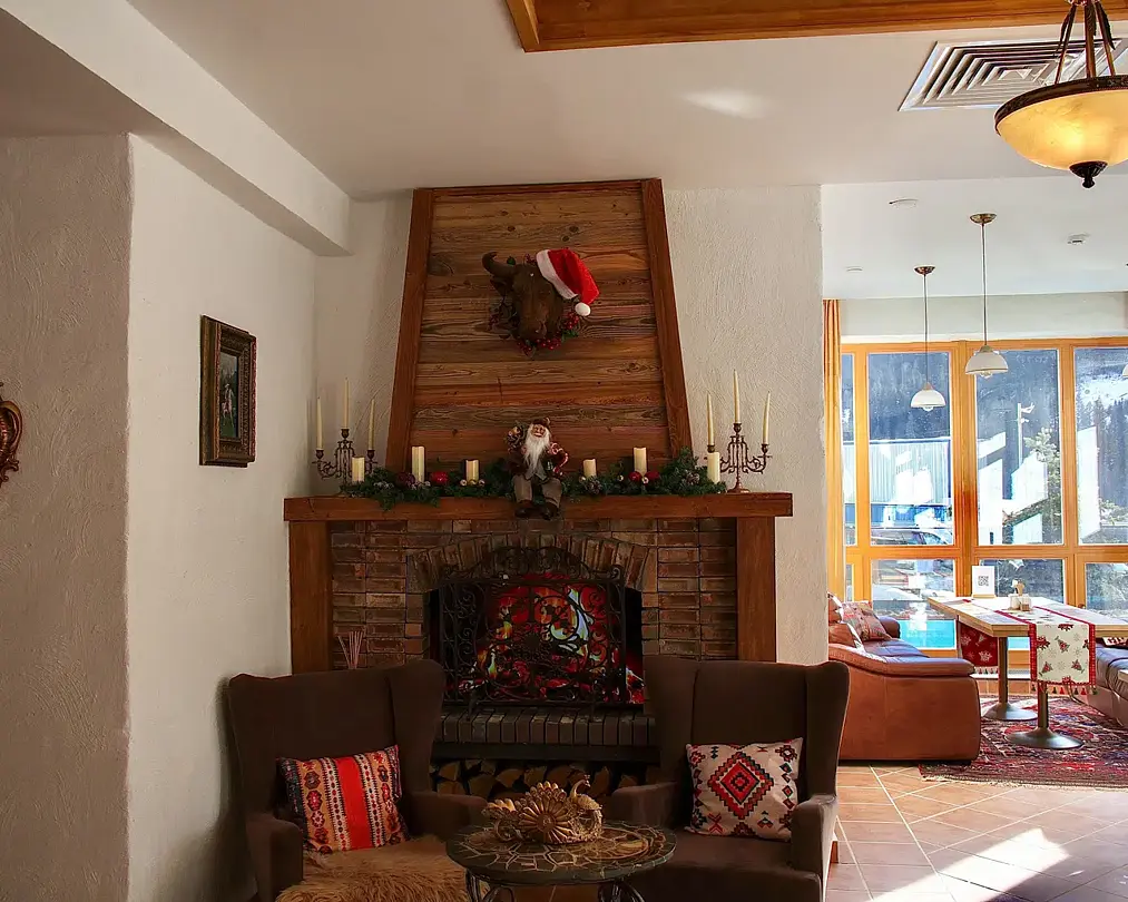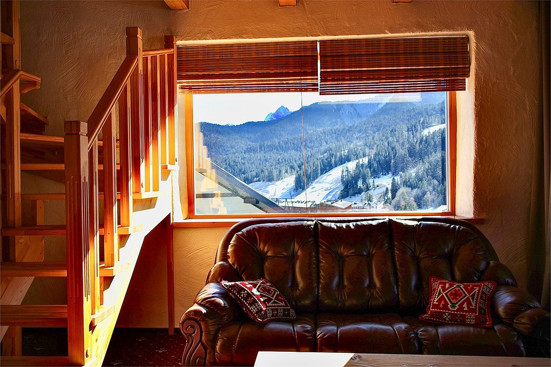 Отель выполнен в альпийском стиле с использованием исключительно натуральных материалов для создания атмосферы теплоты и уюта.