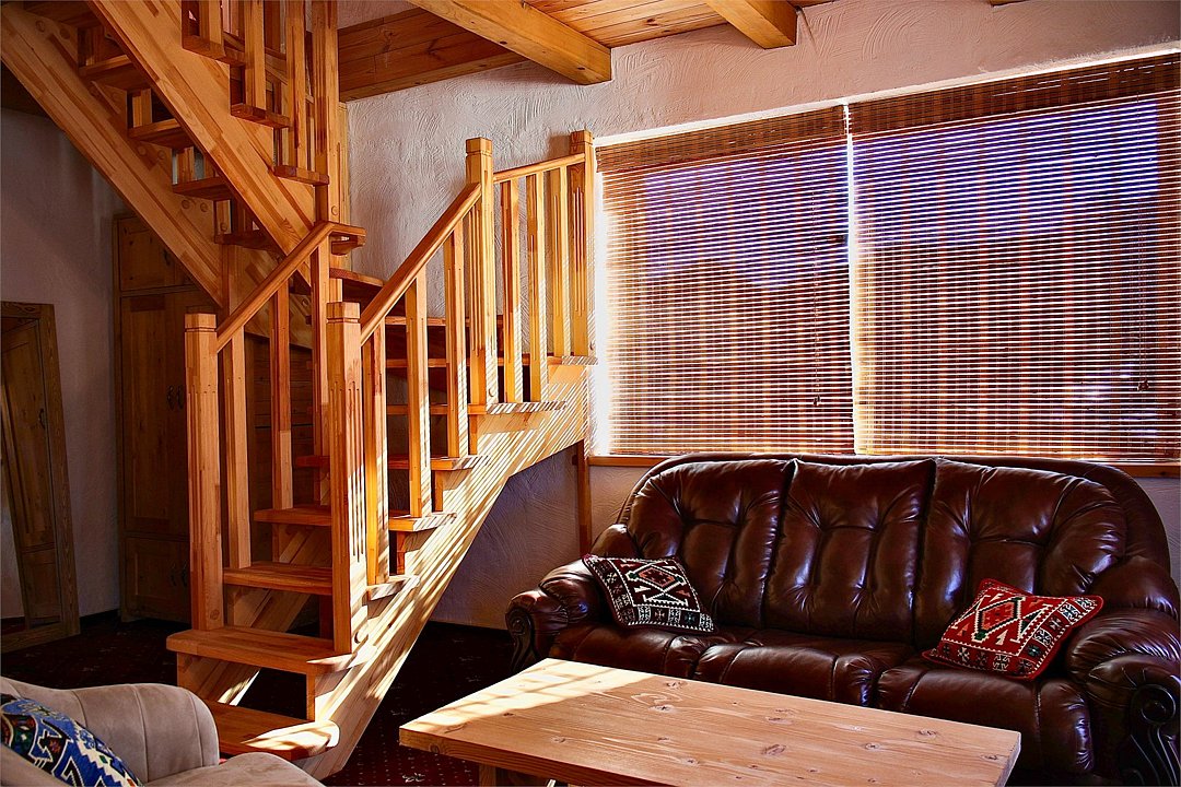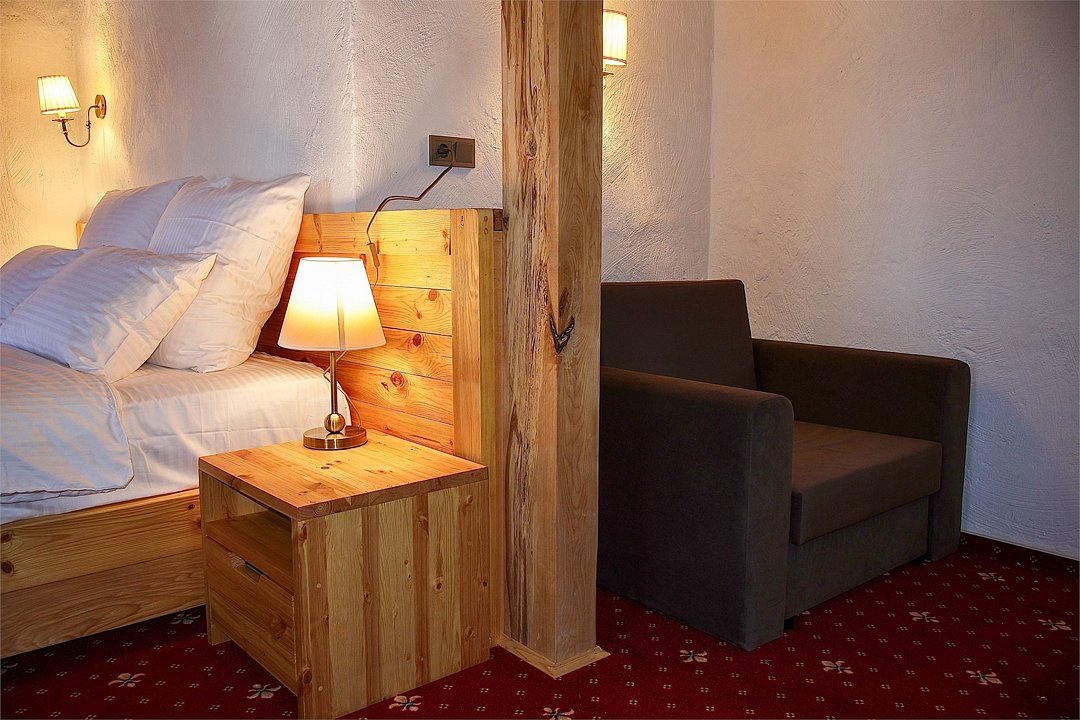 Однокомнатный номер позволяет разместить двух человек на основных местах и еще одного на дополнительном. Интерьер создан из натуральных материалов с заботой о вашем здоровье и комфорте.