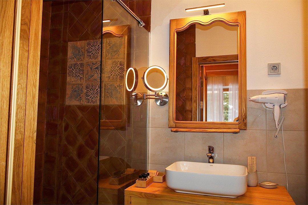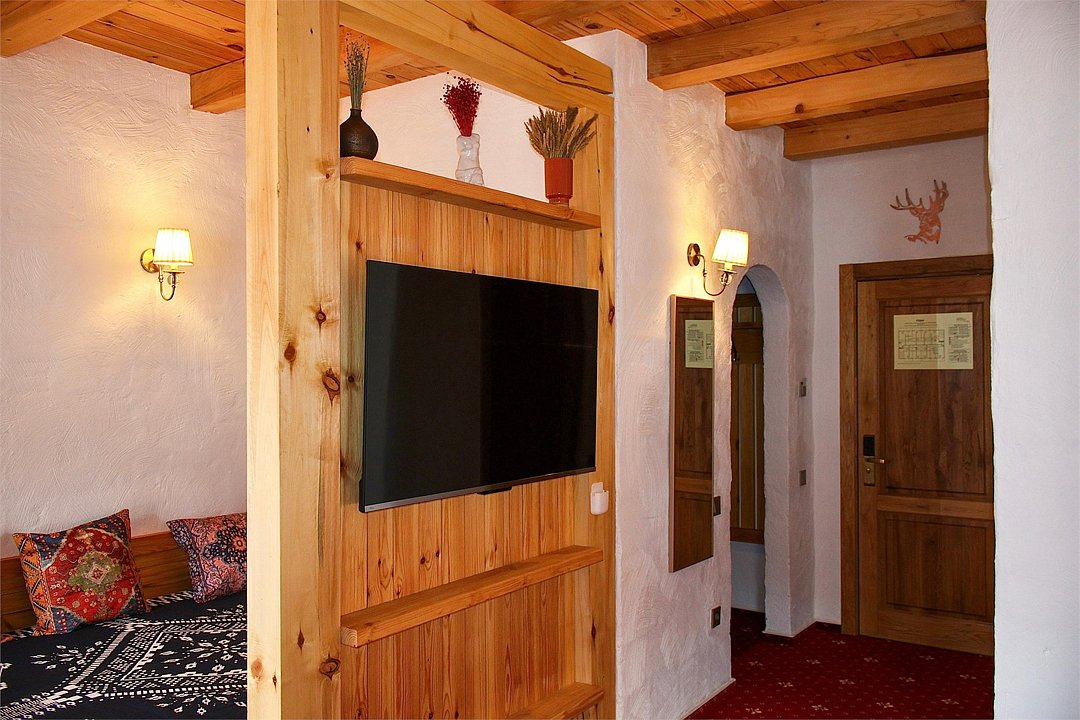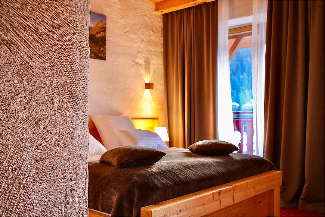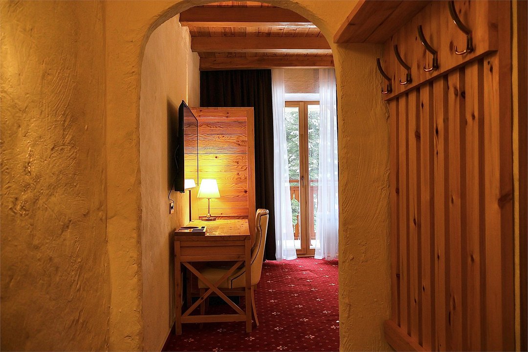 Начну с того, что как только мы зашли на порог этого замечательного отеля, увидели под ногами настоящий клинкер, а когда поднял глаза и посмотрел на стены, то заметил эту грубую мазанку, которая сопровождалась везде и так успокаивала взгляд. Мебель в номерах полностью из сосны, все пахнет деревом. Очень удивили деревянные окна, такие я видел очень давно в Давосе и больше не встречал. По кухне и Спа нареканий тоже нет, приятное авторское меню и уютная спа зона с открытым бассейном (он теплый). В общем и целом остались очень довольны, получили самую настоящую перезагрузку. Спасибо Pino, спасибо персоналу отеля, спасибо всем кто сопровождал нас на этом отдыхе.