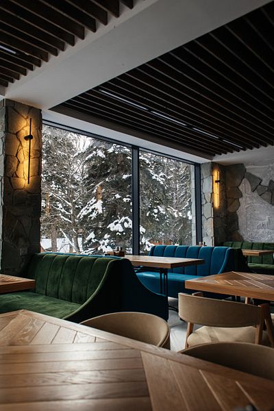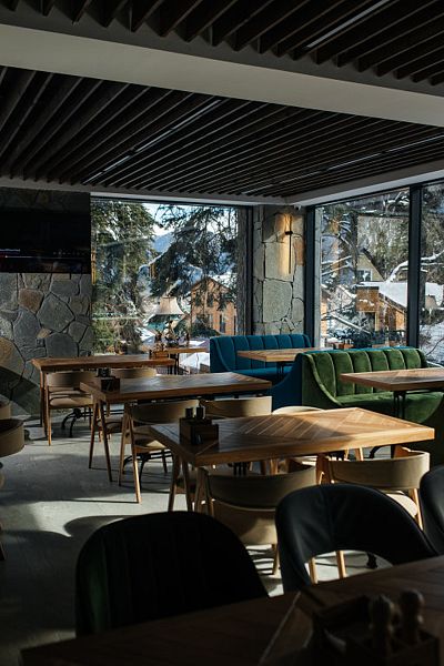Расположенный в живописных горах ресторан — настоящая жемчужина отеля. Здесь вы сможете насладиться изысканной кухней и уютной атмосферой, окруженные великолепными видами на окружающую природу.