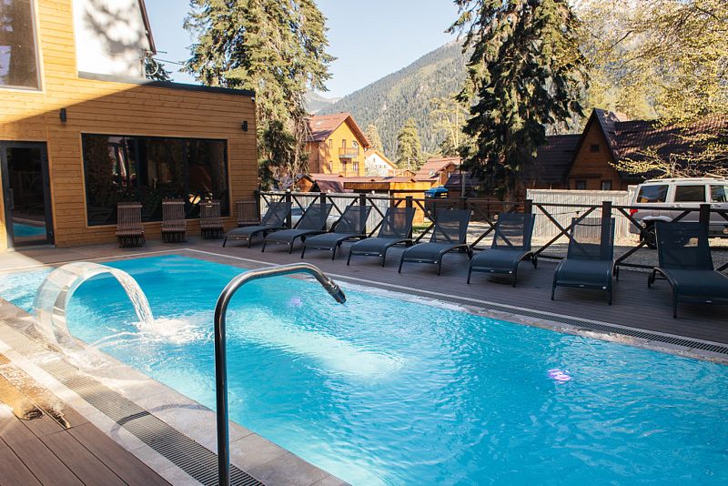 На территории отеля в живописных горах располагается уютный уличный бассейн, который станет идеальным местом для отдыха и релаксации после долгих прогулок по окрестностям.