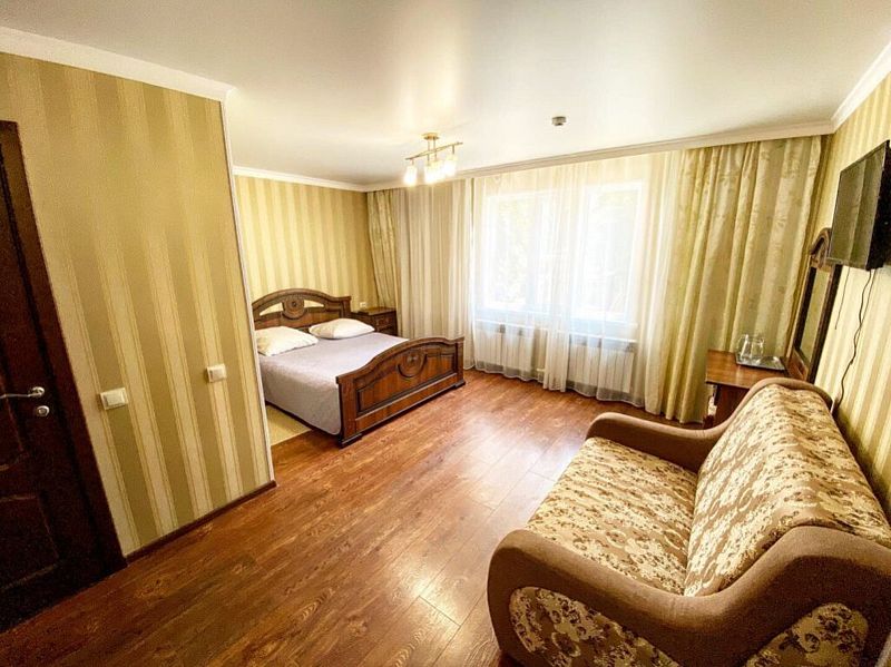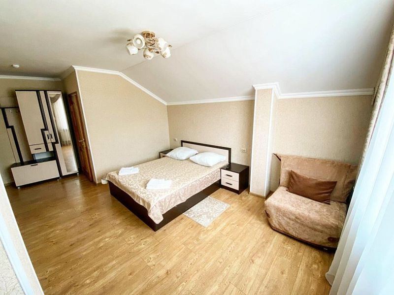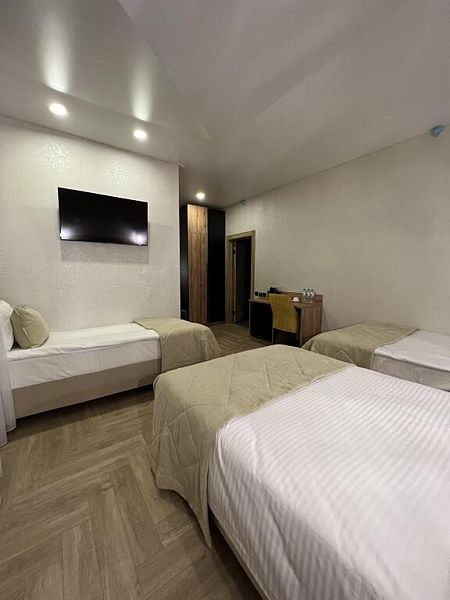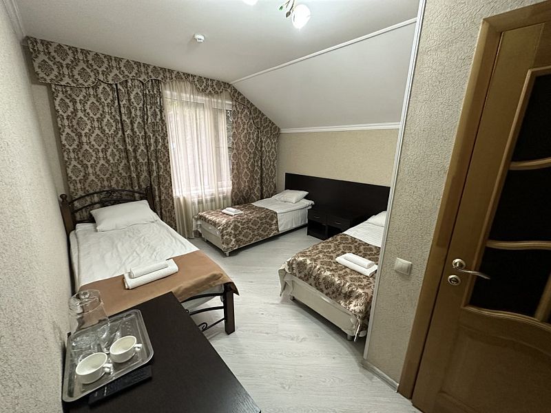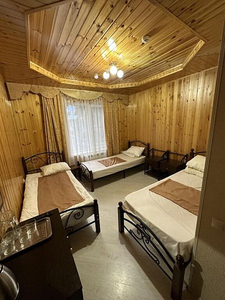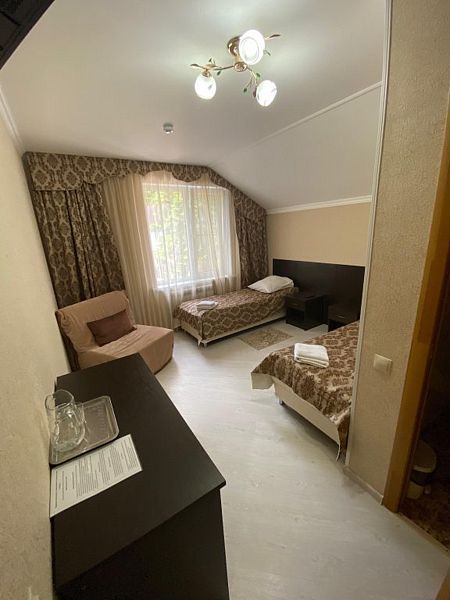 Всего на территории имеется три корпуса, предлагающих номера различного уровня — от люкса до эконома, а также бассейн, финская сауна, ресторан и лобби, где можно обсудить планы на отдых и расслабиться.