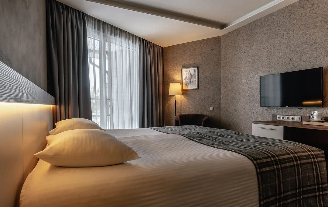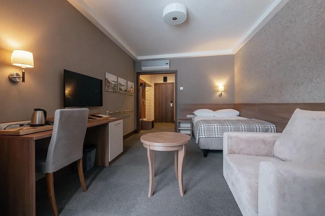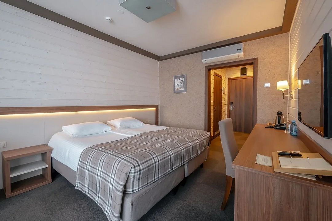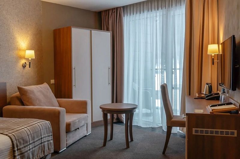 Однокомнатный номер в двухэтажном комплексе гостиницы парк-отеля. Номер рассчитан для 2 гостей с возможностью предоставления одного дополнительного места для гостей до 13 лет (раскладная кровать).