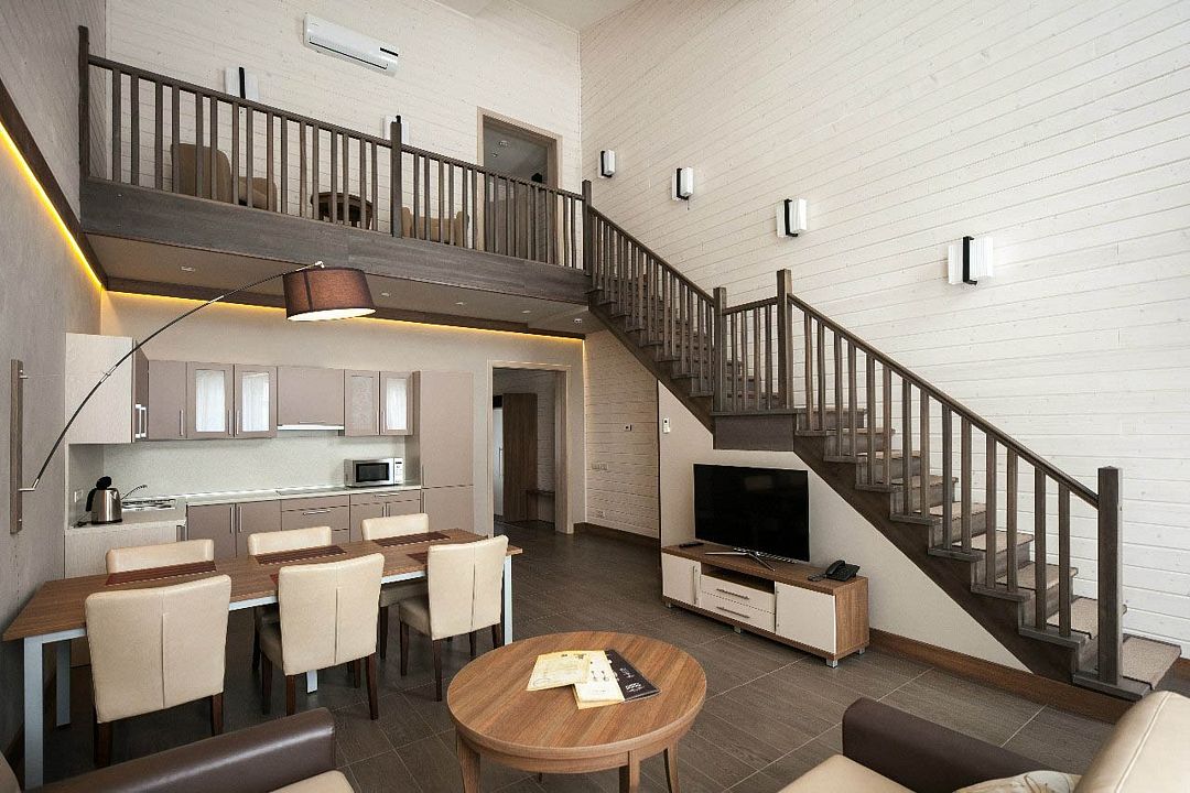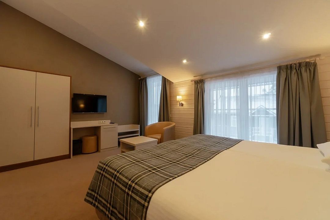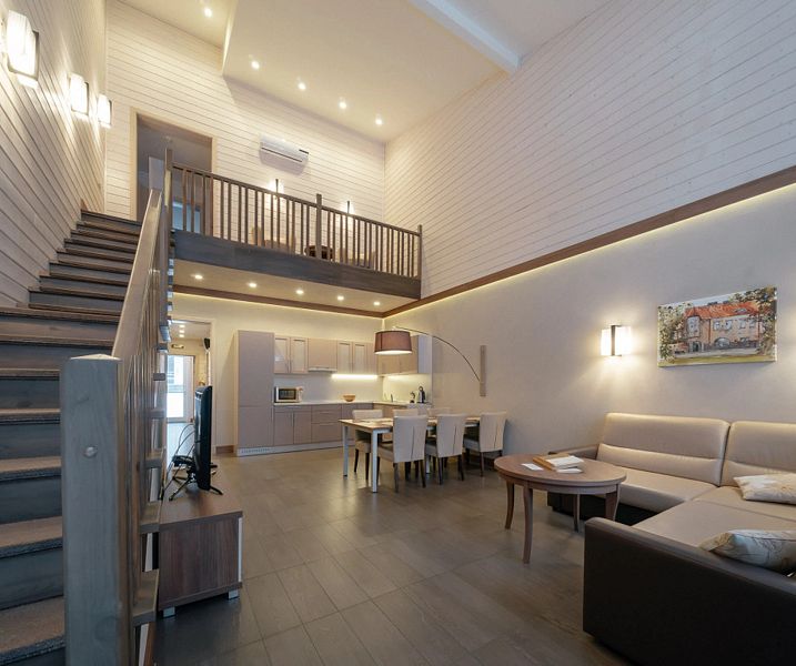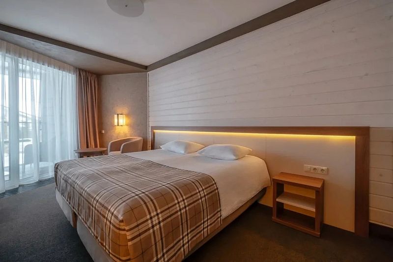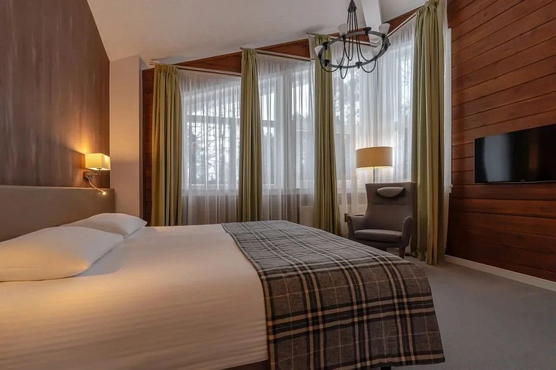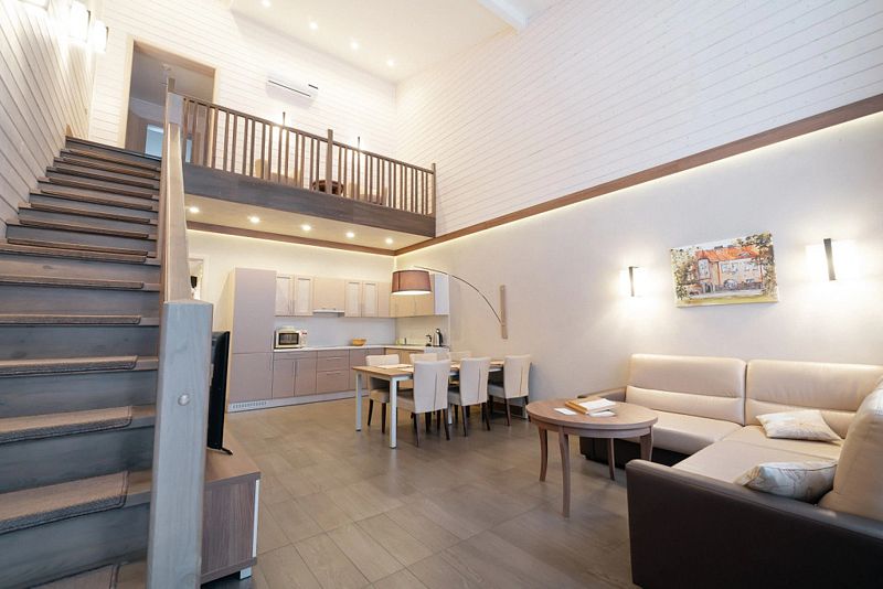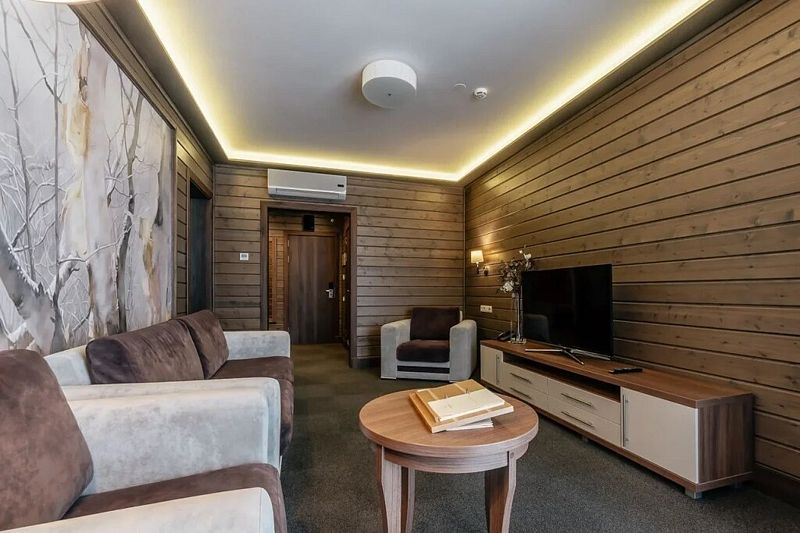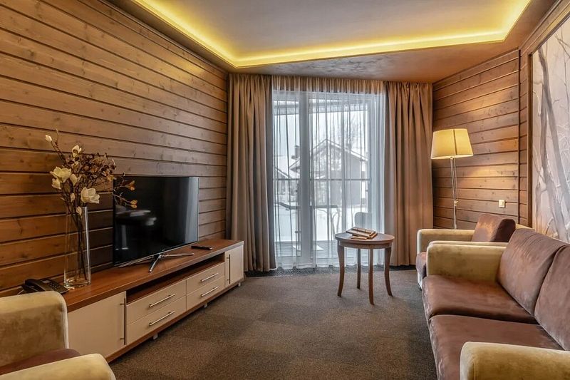 Двухкомнатный номер категории люкс в двухэтажном комплексе гостиницы парк-отеля. Номер рассчитан для 2 гостей с возможностью предоставления одного дополнительного места для гостей до 13 лет (еврораскладушка).