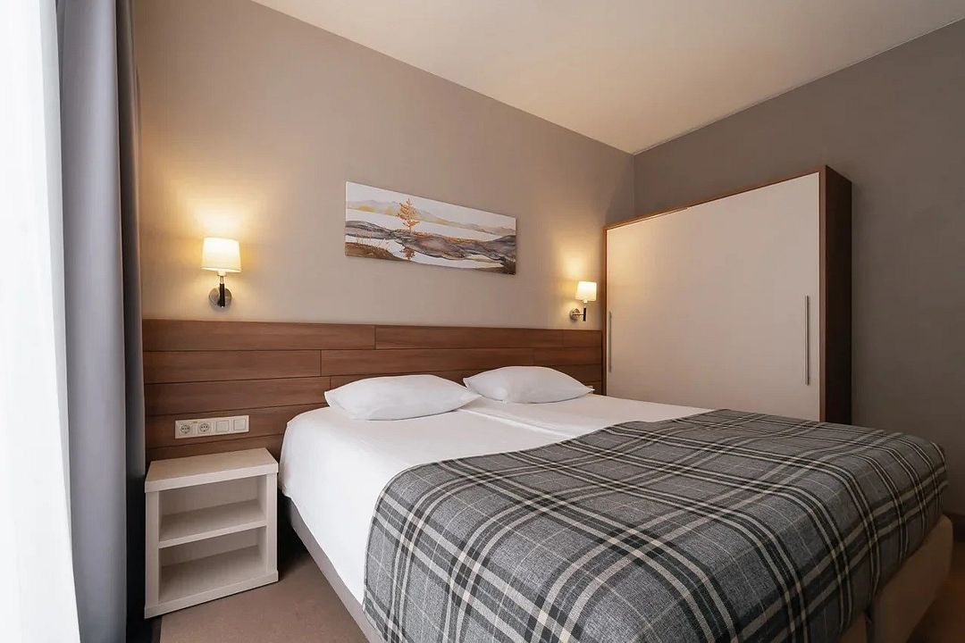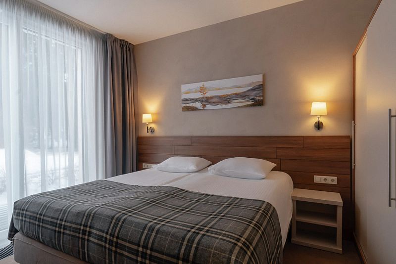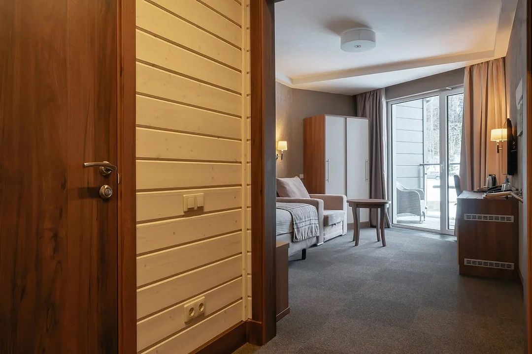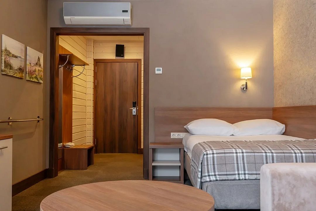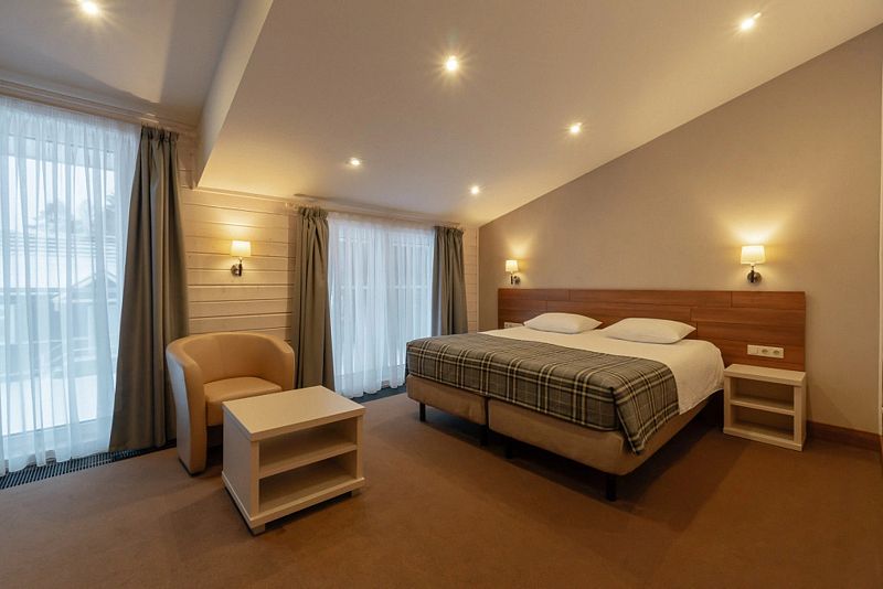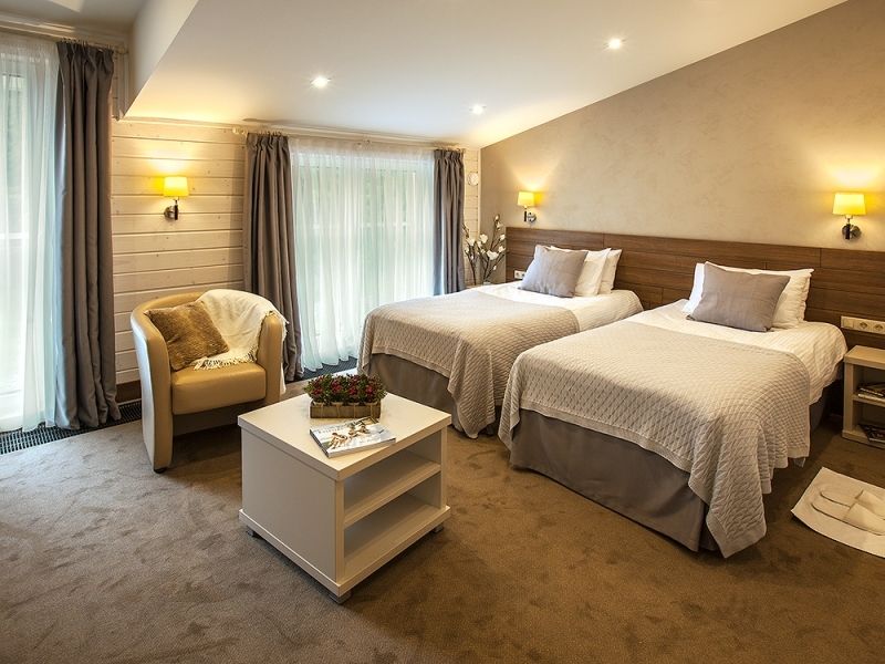 Двухкомнатный номер категории люкс в двухэтажном комплексе гостиницы парк-отеля. Номер рассчитан для 2 гостей с возможностью предоставления одного дополнительного места для гостей до 13 лет (еврораскладушка).