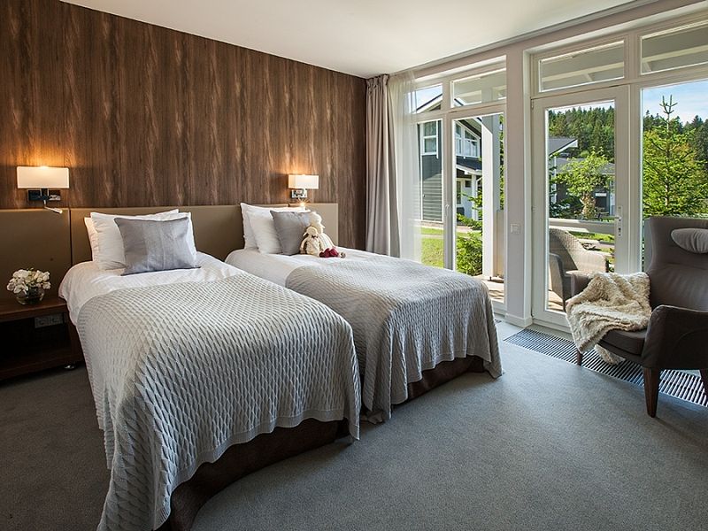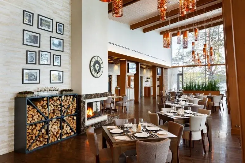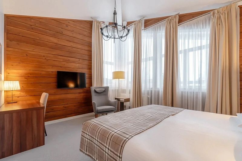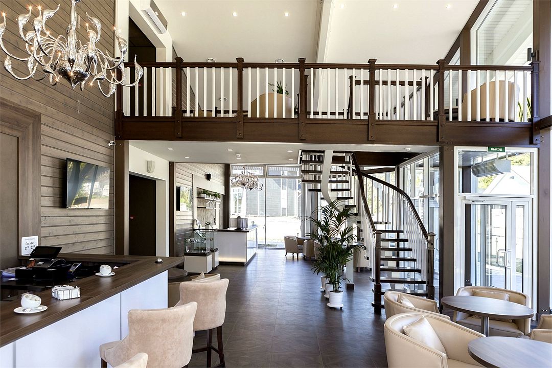 Единственное, что ненавязчиво напоминает здесь о городском стиле жизни, это высокий стандарт обслуживания — классика гостиничного сервиса. Стойка администратора и обслуживание номеров к услугам гостей 24 часа в сутки. Здесь же — лобби-бар с видом на хвойный лес, не уступающий столичным кафе по интерьеру и качеству услуг.