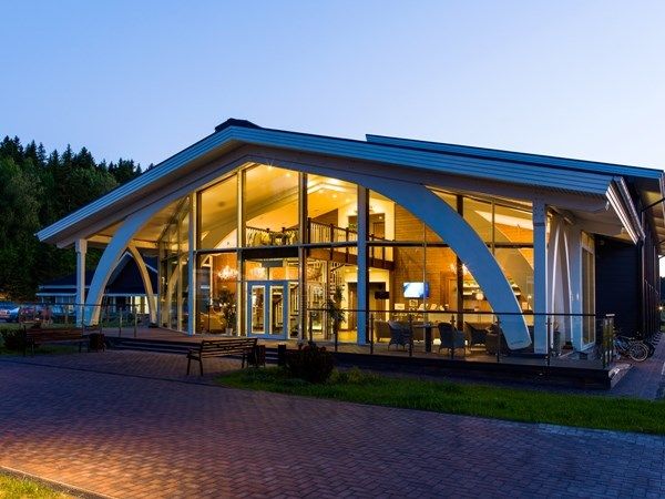 Архитектурный ансамбль парк-отеля идеально вписывается в сосновую идиллию этих мест.