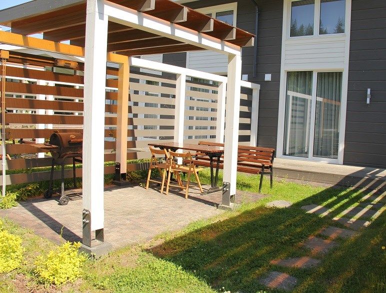 — террасу с мебелью и оборудованием для барбекю.