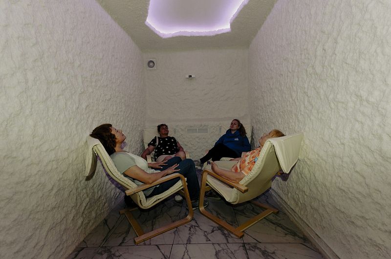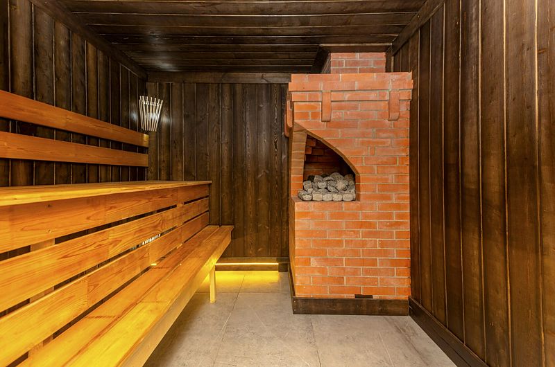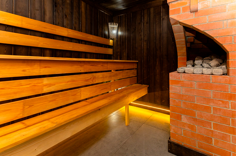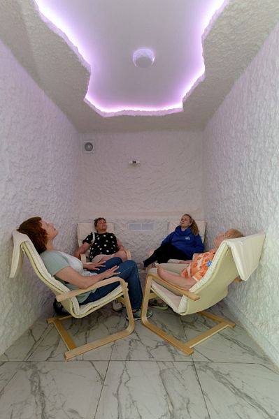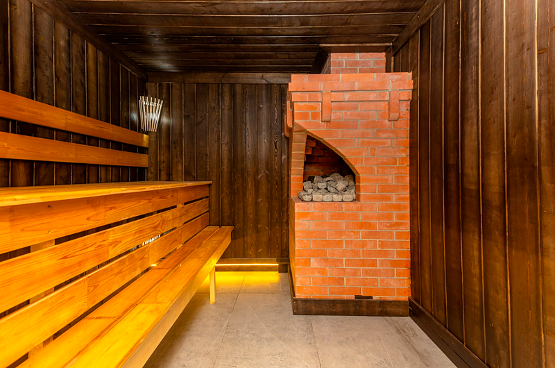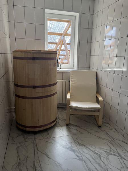 На первом этаже комплекса — баня, а также купель на открытом воздухе. На втором — соляная комната и две кедровые бочки, а также косметологические кабинеты – массажа и водорослевых обертываний ламинарией.