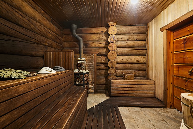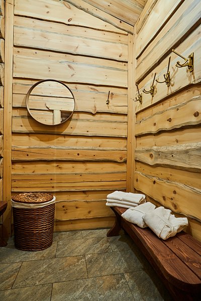 Для любителей традиционных оздоровительных процедур на территории отеля имеется настоящая русская баня из уникального сухостоя Кело. Здесь можно не только попариться, но и снять напряжение.
