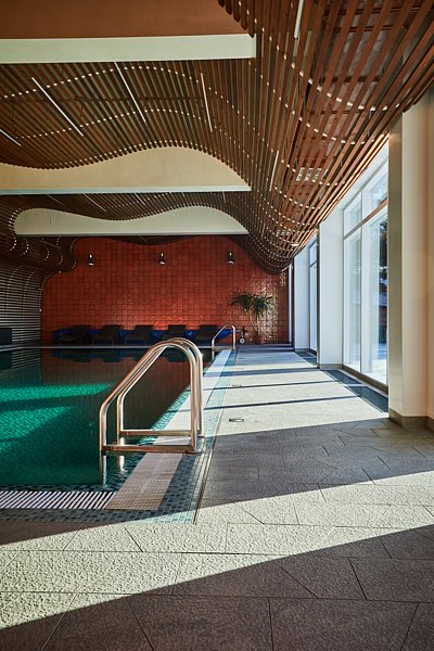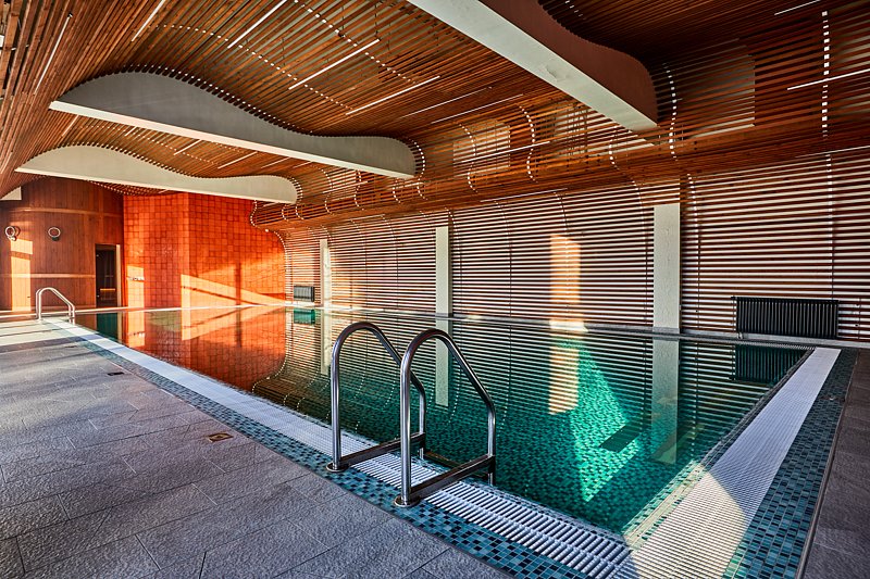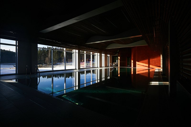 СПА-центр располагает бассейном 15*7 метров без хлора и соли. Из панорамных окон бассейна открывается живописный вид на Ладожское озеро. Также в СПА-комплексе есть Хаммам и Сауна.