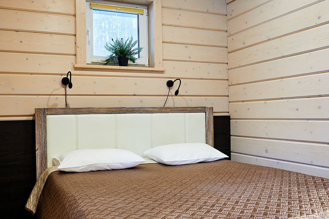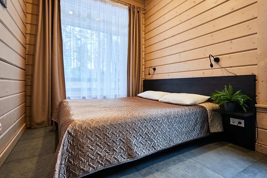 Уютный коттедж с двумя спальнями, большой гостиной, камином, террасой и сауной (за доп. плату). Здесь есть все для комфортного проживания семьи или компании друзей до 6 человек.