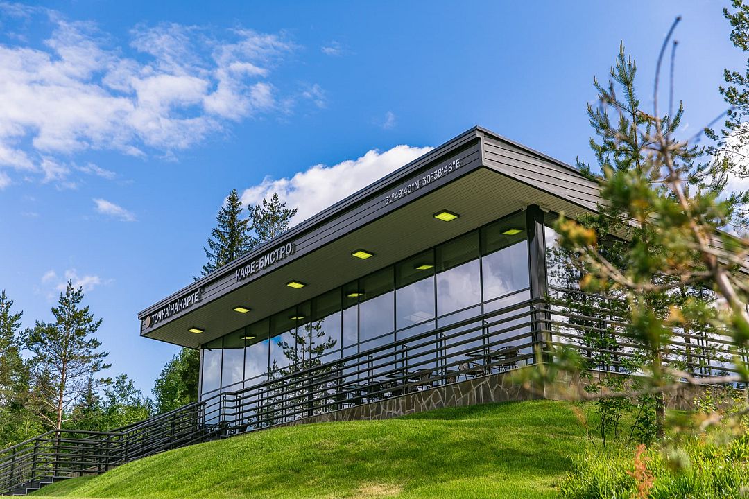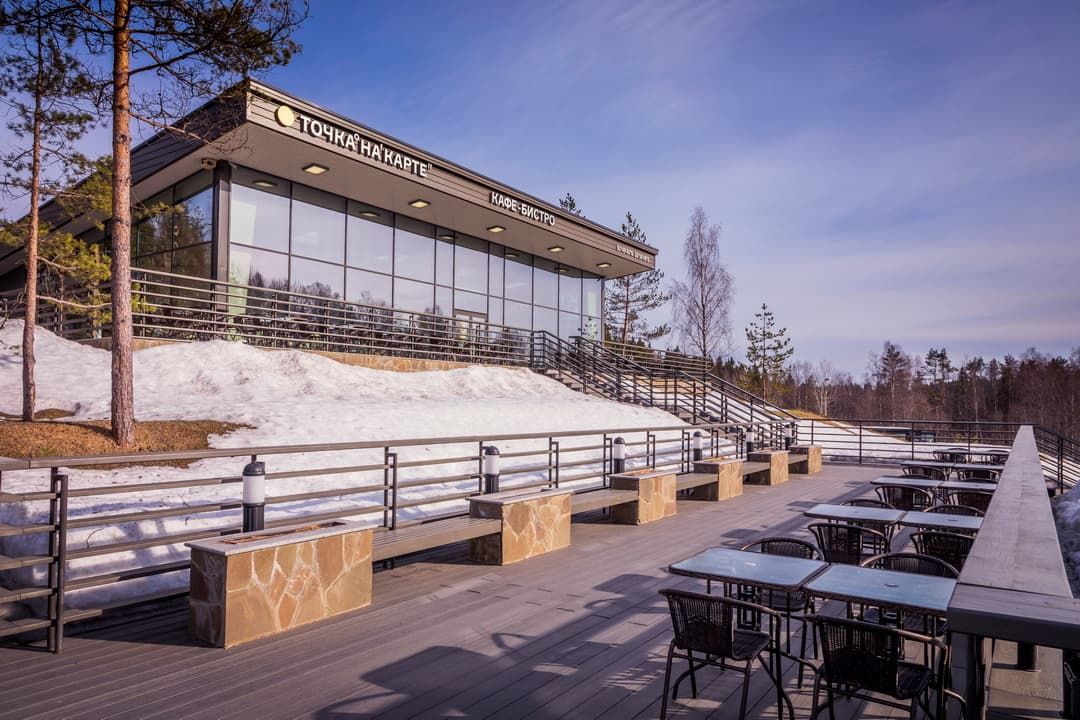 Кафе-бистро «Точка на карте. Сортавала» расположено всего в 700 метрах от отеля, и добраться до него можно по живописной лесной экотропе. Это уютное заведение вмещает до 90 человек и предлагает разнообразные кулинарные изыски: от завтраков в формате «шведского стола» с неограниченным доступом к деликатесам до сытных обедов и ужинов.