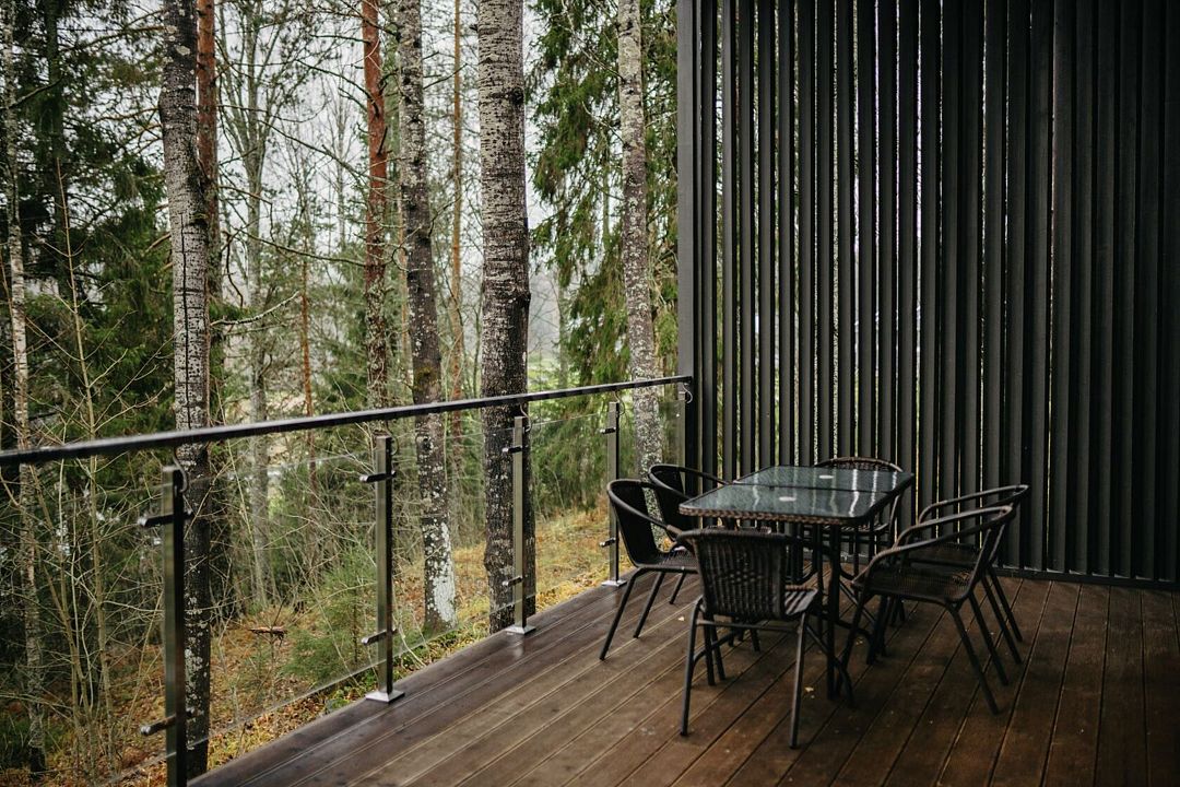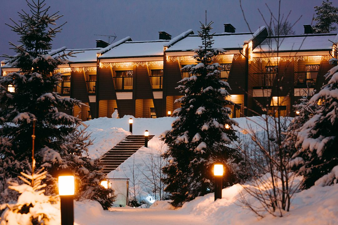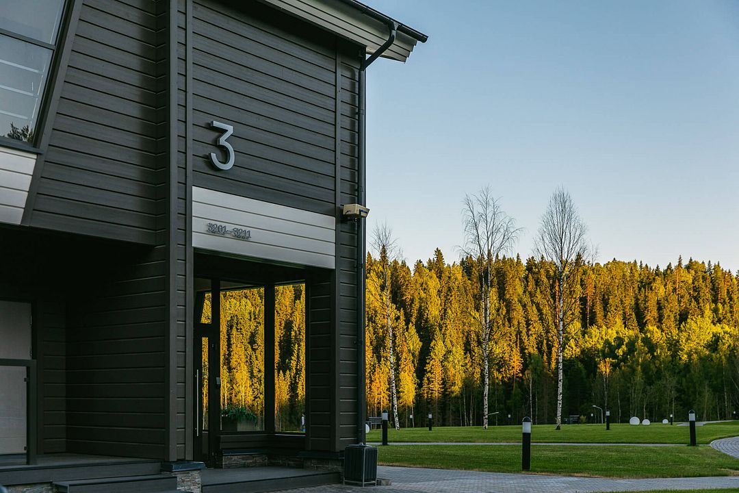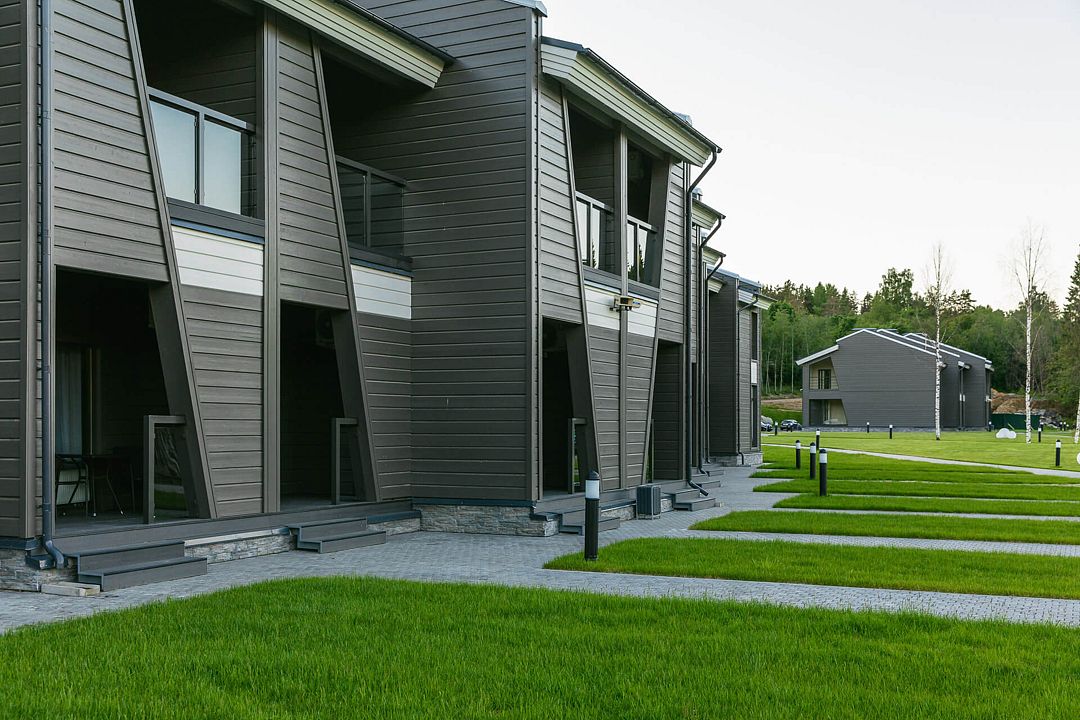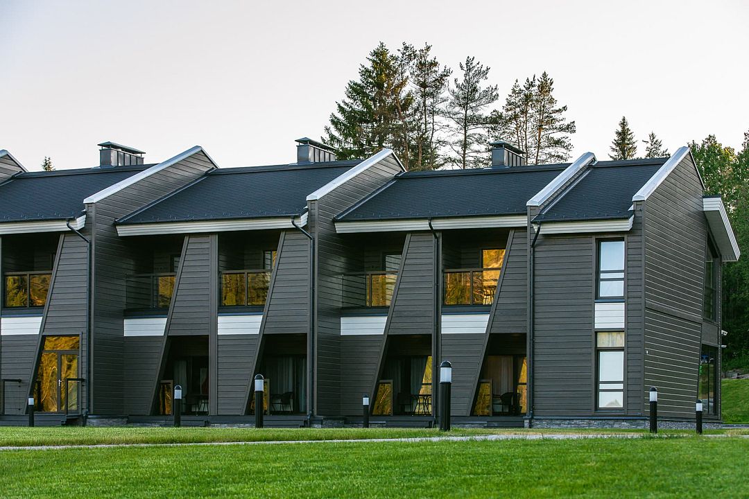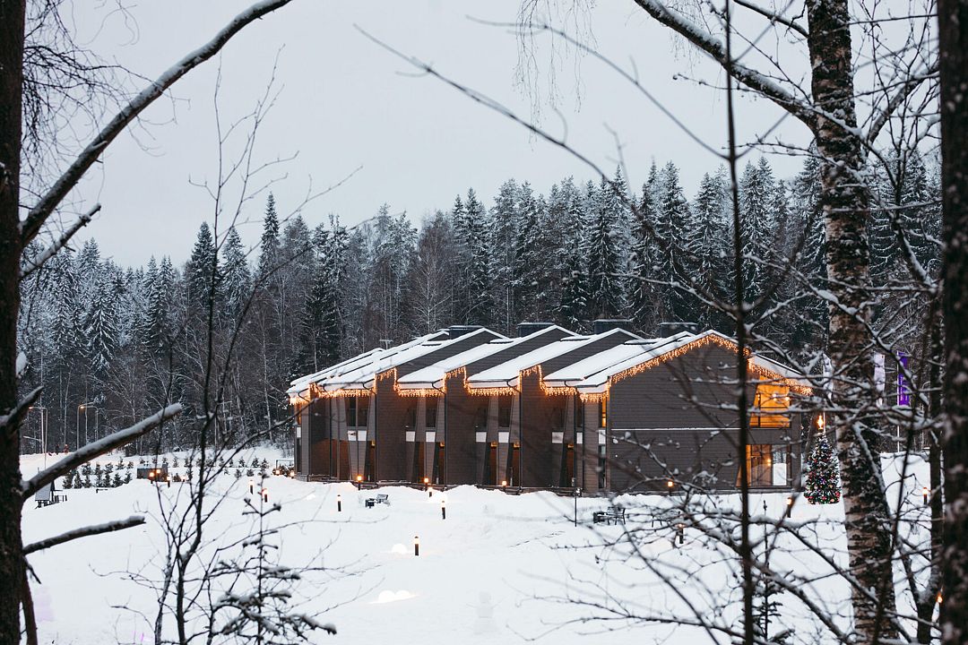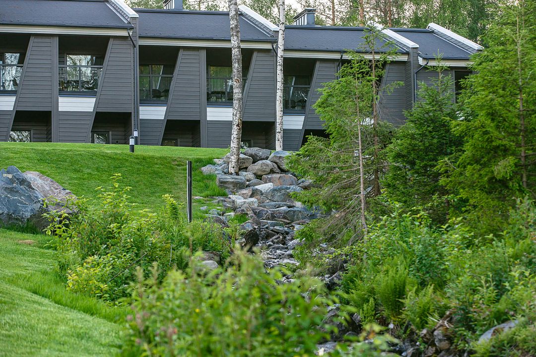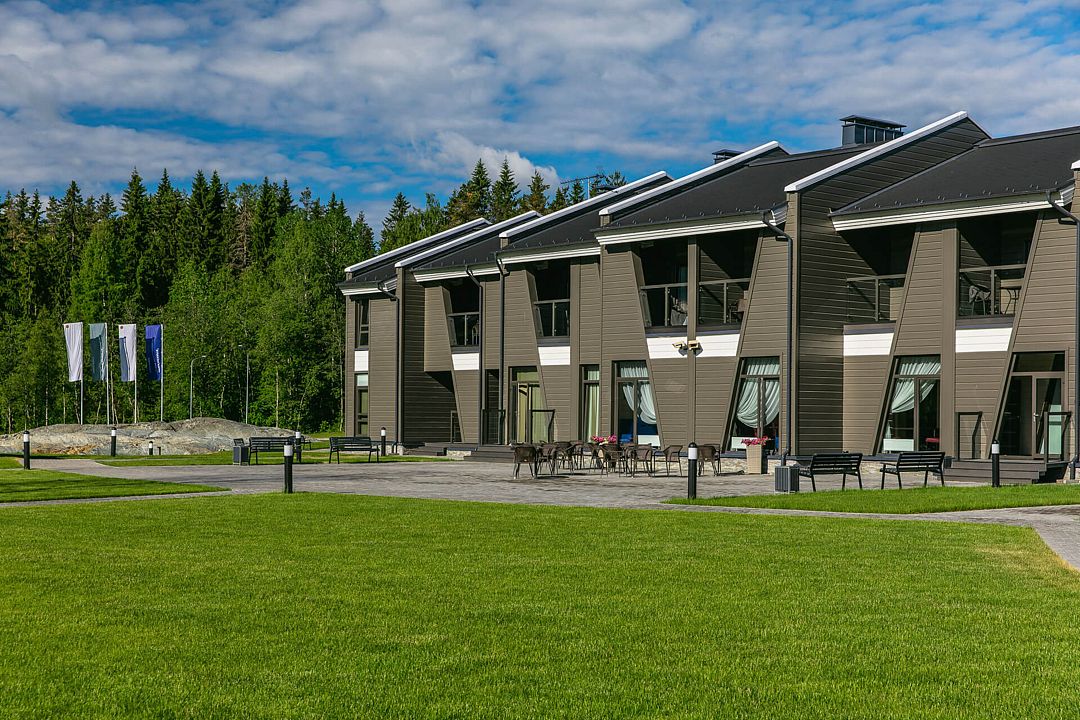Отель состоит из трех двухэтажных гостиничных комплексов, расположенных на берегу озера Пюяралампи. Из каждого номера открывается захватывающий вид на озеро и лес. На первом этаже есть терраса с удобными креслами, а на втором — балконы, которые идеально подходят для проведения русских вечеров на свежем воздухе.