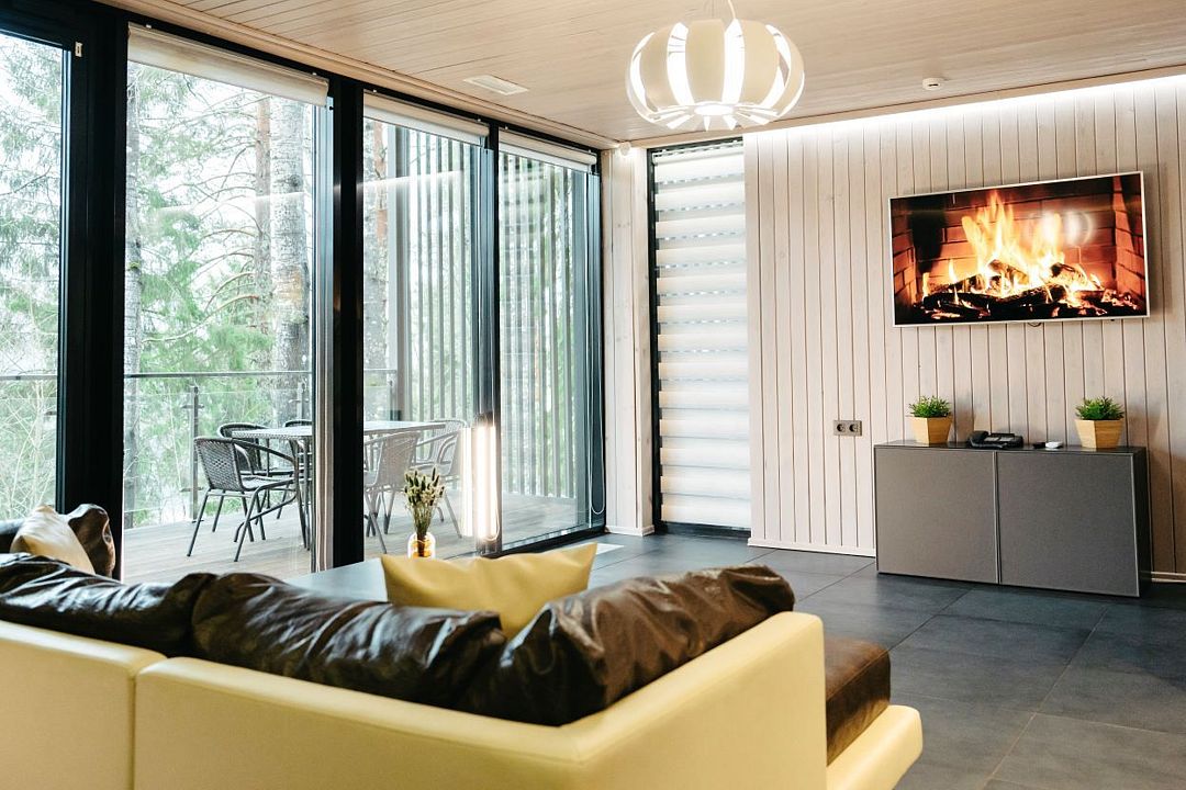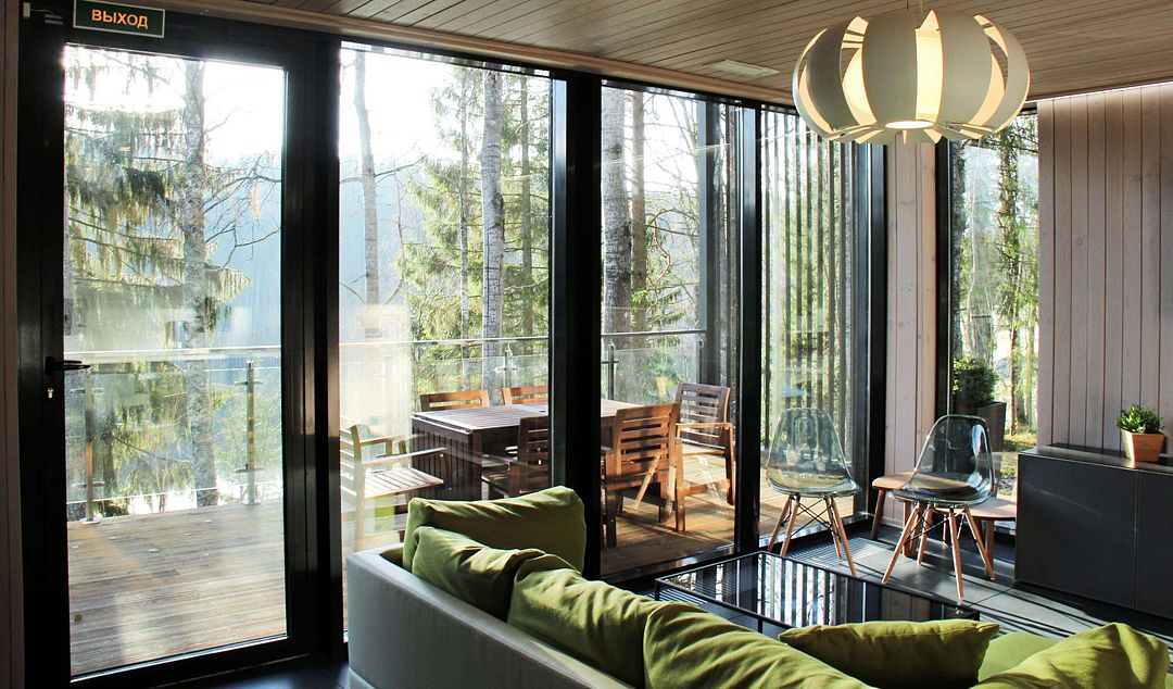 Из минусов: на окнах нет сеток, поэтому спать с открытым окном невозможно. Очень обидно, хочется дышать запахом леса, а не гонять кондиционер.