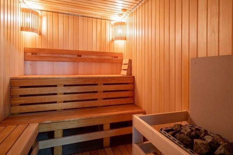 Спа-комплекс включает в себя сухую финскую сауну, турецкий хамам с температурным диапазоном от 30 до 55 градусов и натуральными ароматизаторами.