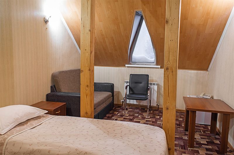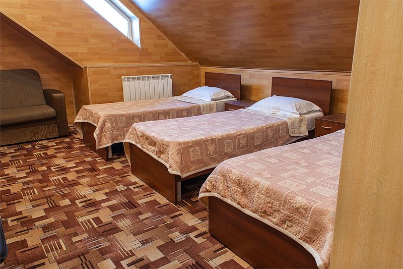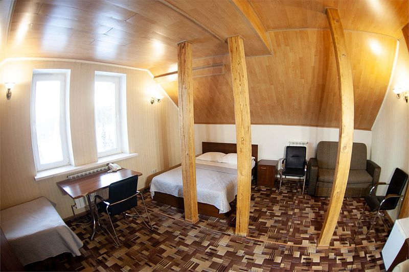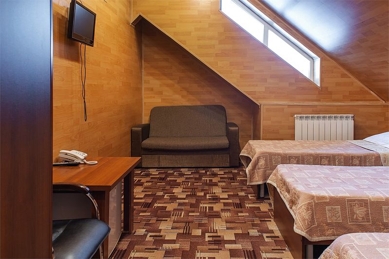 Данный номер является экономичным решением, как для нескольких Гостей, так и для большой компании. Номер расположен в мансардной части отеля (5 этаж). Номер данной категории обладает всеми удобствами и набором услуг, что и остальные категории номеров в отеле.