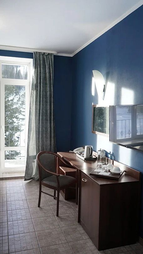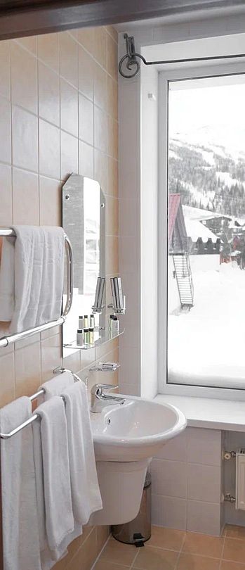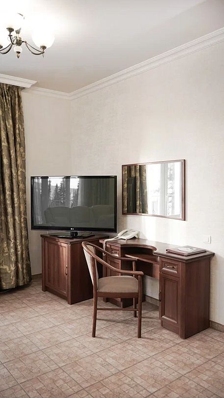 Преимуществом данного номера является собственная терраса с панорамным видом на заснеженные вершины гор. По-настоящему красивый вид сделает Ваш отдых незабываемым. Интерьер номера выполнен в классическом стиле.