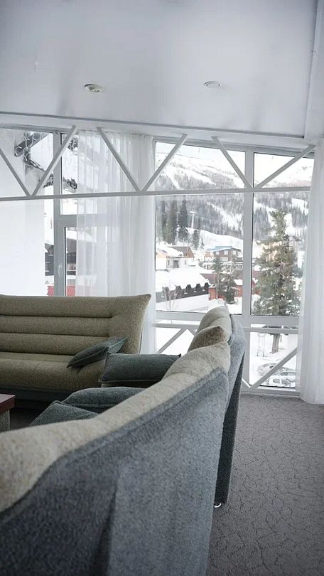 Номер состоит из спальни с большой двухместной кроватью, гостиной зоны, прихожей, ванной комнаты и террасой с панорамным видом на курорт Шерегеш. Дополнительные места в номере: раскладной диван и кресла.