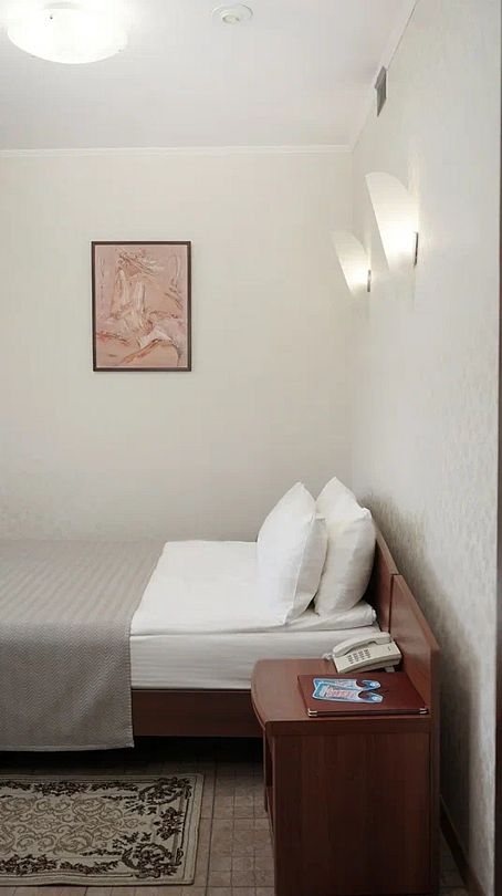 Данный номер является экономичным решением, как для нескольких Гостей, так и для большой компании. Номер расположен в мансардной части отеля (5 этаж). Важно! В номере не открывается окно.