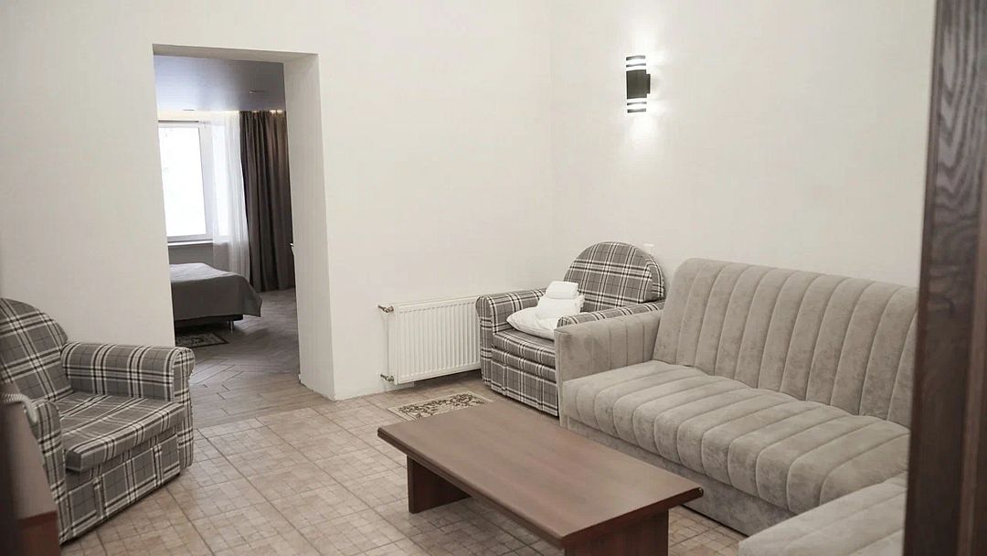 Двухкомнатный номер с элегантной планировкой и всем необходимым для комфортного размещения. Номер оборудован изящной мебелью в классическом стиле. В гостиной: диван и кресла для отдыха, письменный стол и обеденная зона.
