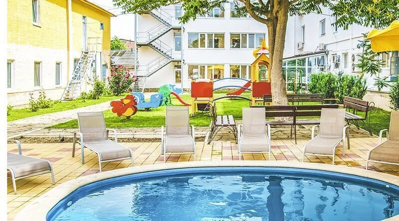 На территории отеля расположена зеленая прогулочная зона, релакс-зона, детская площадка и детский бассейн, ресторан с верандой, открытая площадка на мансардном этаже с панорамным видом на море, где расположен кинотеатр под открытым небом. Кроме того, в отеле есть лечебный корпус, где можно пройти курс оздоровительных процедур.