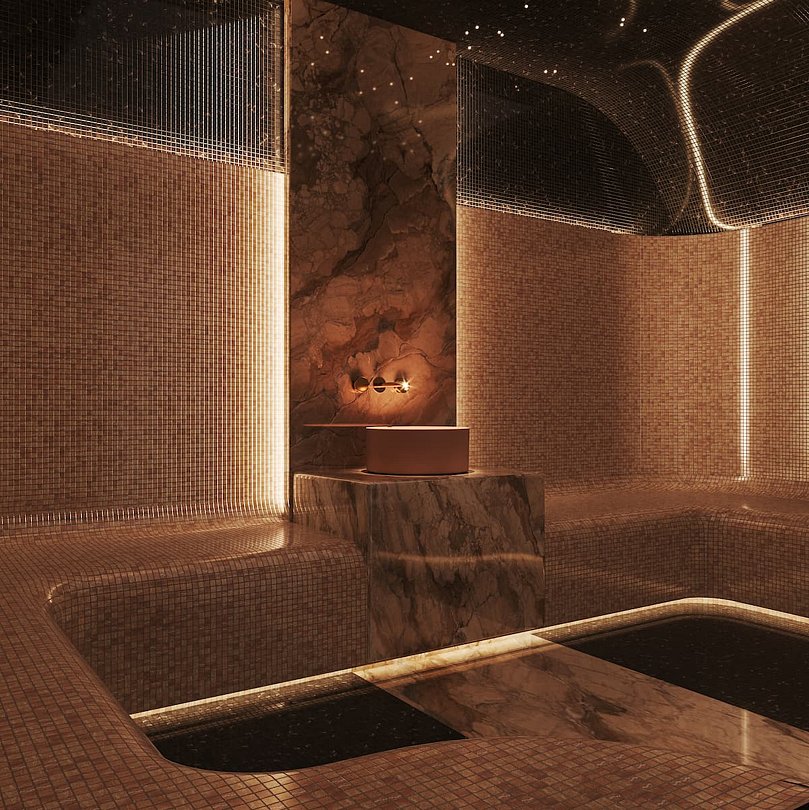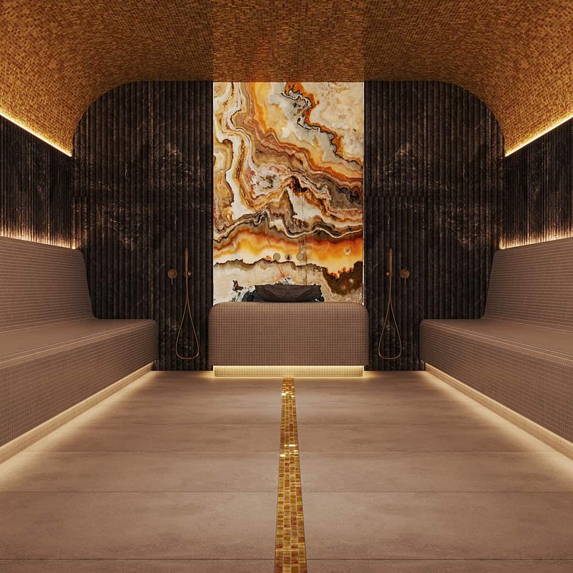 Мягкий влажный пар, тёплые мраморные поверхности и подсветка «звёздное небо» создают идеальные условия для очищения и восстановления.