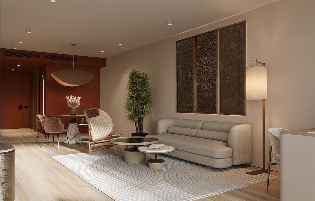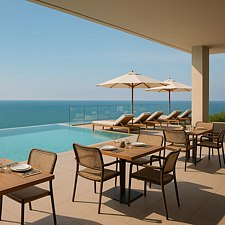 Флагманская резиденция на вершине отеля: 178 м? приватного пространства и терраса 31 м? — горизонт моря и полная тишина для важных моментов. Интерьер в эстетике «тихой роскоши»: благородные фактуры, мягкая архитектурная подсветка, деликатные тайские акцен