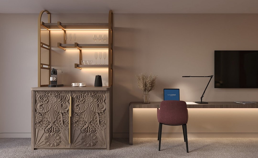 Гости смогут насладиться утренним кофе, чаями и тайскими напитками, а вечером – авторскими коктейлями, премиальными винами и блюдами европейской и паназиатской кухонь от шеф-повара. Интерьер планируется в тёплых натуральных оттенках с акцентами тайского декора, создавая гармоничное пространство для деловых встреч, спокойных бесед или ожидания за бокалом шампанского.