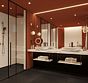 В финской сауне Devarana — светлое дерево, природный камень у печи и мягкая подсветка, которая задаёт расслабленный ритм. Многоуровневые полки позволяют выбрать комфортную степень прогрева, а остекление создаёт ощущение пространства и лёгкого дыхания.