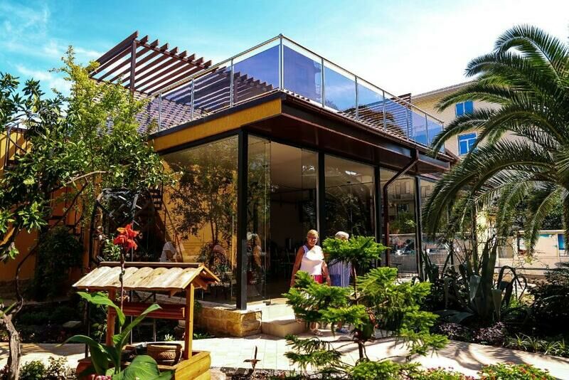 Отель «Ева» с открытым бассейном, садом и видом на сад расположен в Адлере, в 1 км от Кораллового пляжа. Отель находится примерно в 2,1 км от пляжа Хосты, в 6 км от торгового центра Plaza Home и в 7 км от Адлерского собора Святого Саркиса. Местные достопримечательности, такие как керлинговый центр «Ледяной куб» и ледовый дворец «Большой», расположены в пределах 9 км и 9 км соответственно.