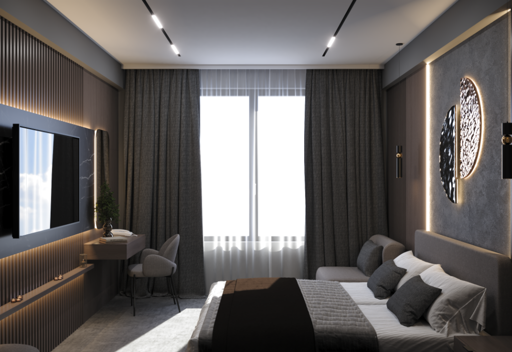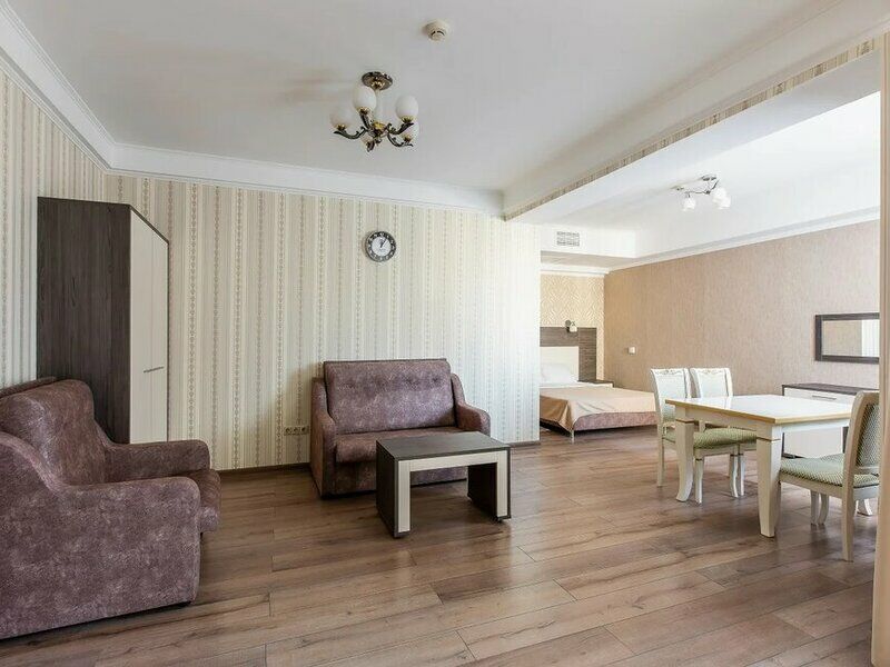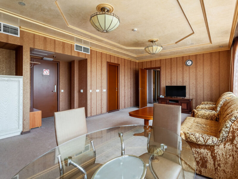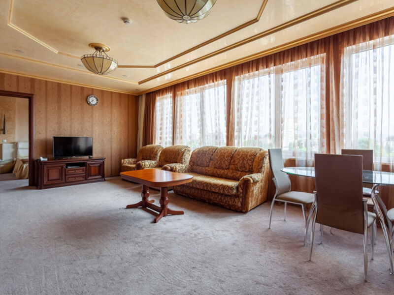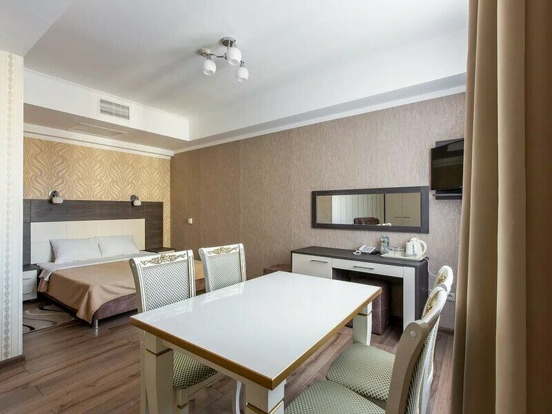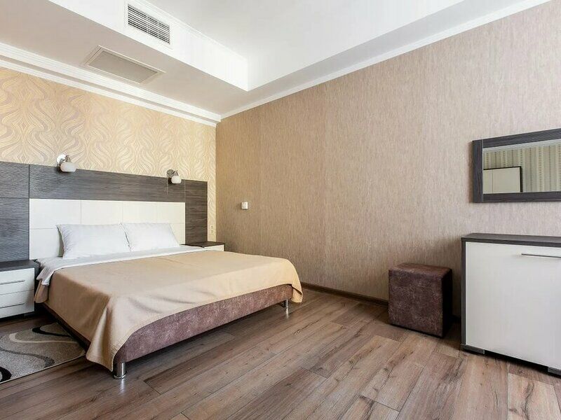 Семиэтажное здание отеля, оснащенное лифтом, занимает территорию площадью 8000 кв.м. с небольшим внутренним двором. Жилой фонд рассчитан на 190 человек. Гостей ожидают комфортабельные, просторные номера категории Стандарт, Люкс и Джуниор. Стильные лаконичные интерьеры с современным дизайном выдержаны в светлых оттенках. Каждый номер оснащен санузлом с душевой кабиной или ванной и сплит-системой. В комнатах есть вся необходимая техника — телевизор, фен, электрочайник. Люксы оборудованы удобной кухней.