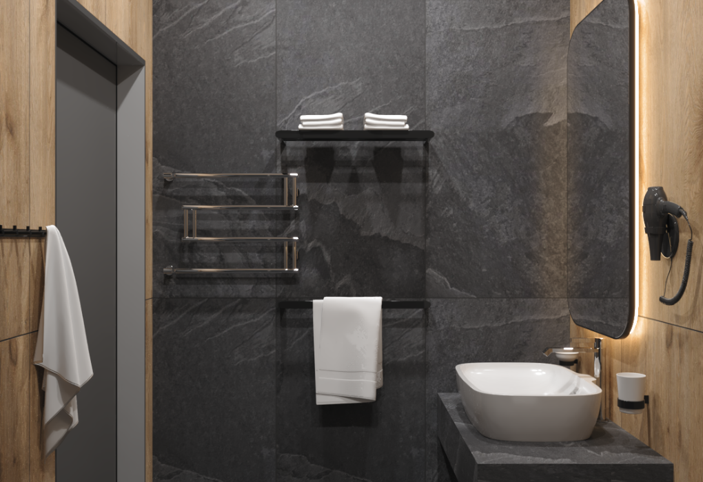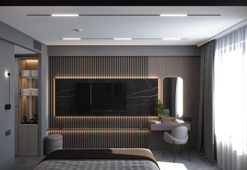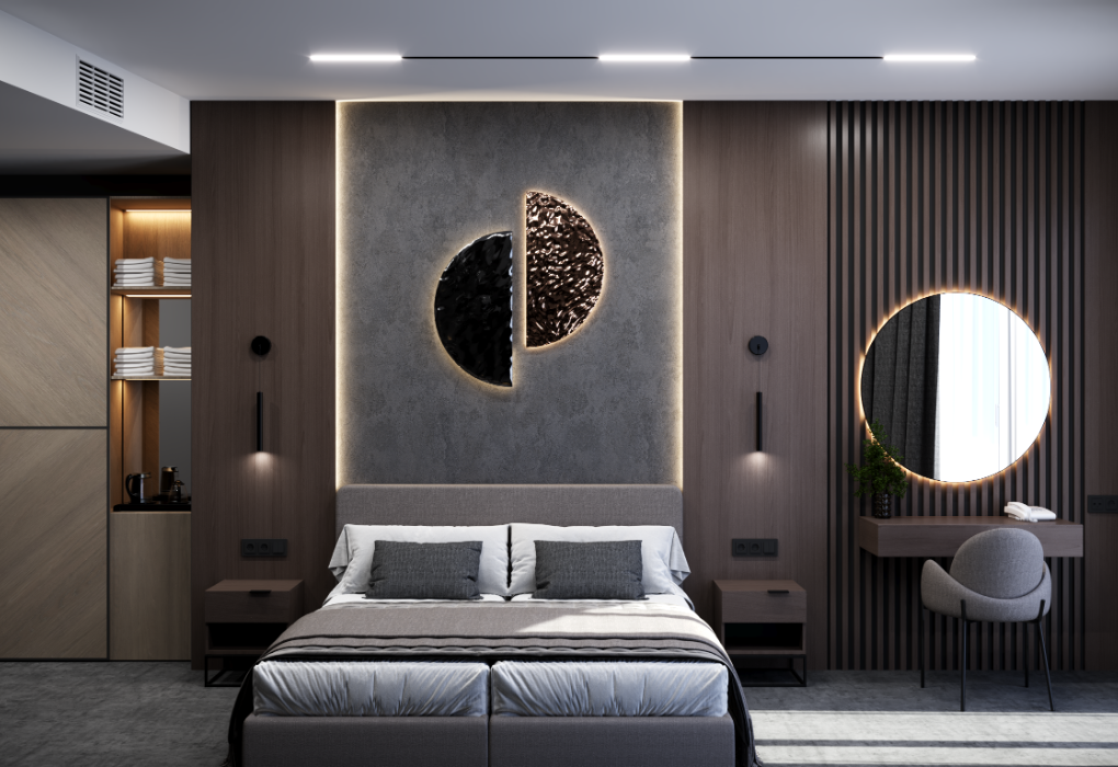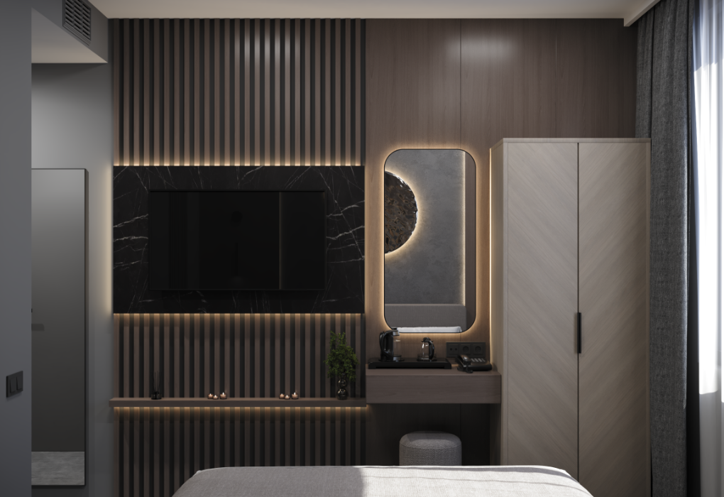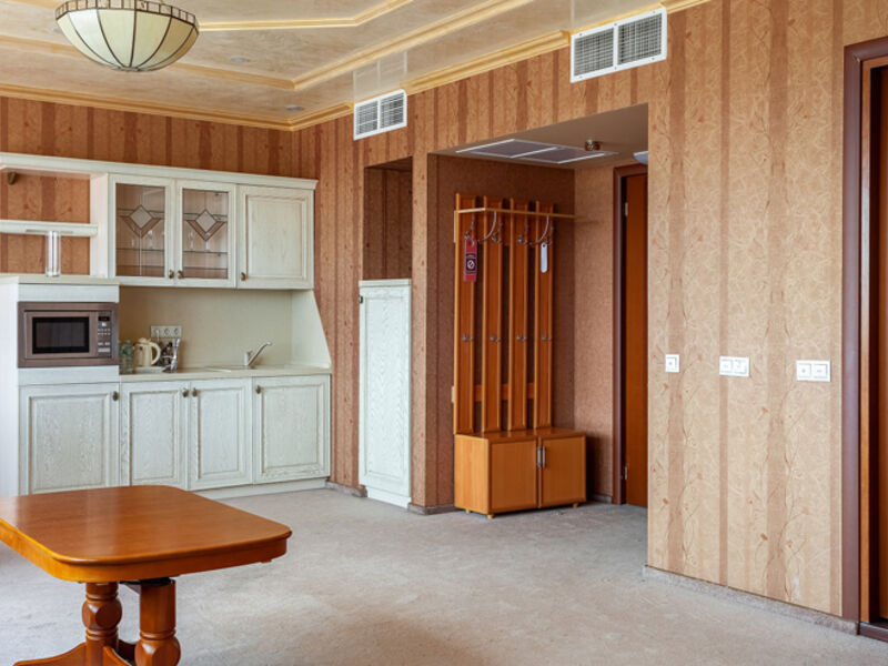 Семиэтажное здание отеля, оснащенное лифтом, занимает территорию площадью 8000 кв.м. с небольшим внутренним двором. Жилой фонд рассчитан на 190 человек. Гостей ожидают комфортабельные, просторные номера категории Стандарт, Люкс и Джуниор. Стильные лаконичные интерьеры с современным дизайном выдержаны в светлых оттенках. Каждый номер оснащен санузлом с душевой кабиной или ванной и сплит-системой. В комнатах есть вся необходимая техника — телевизор, фен, электрочайник. Люксы оборудованы удобной кухней.