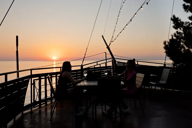- Изюминка этого места — это артель рыбаков (по соседству с отелем), у которых можно отведать свежую черноморскую рыбу, мидии и устрицы