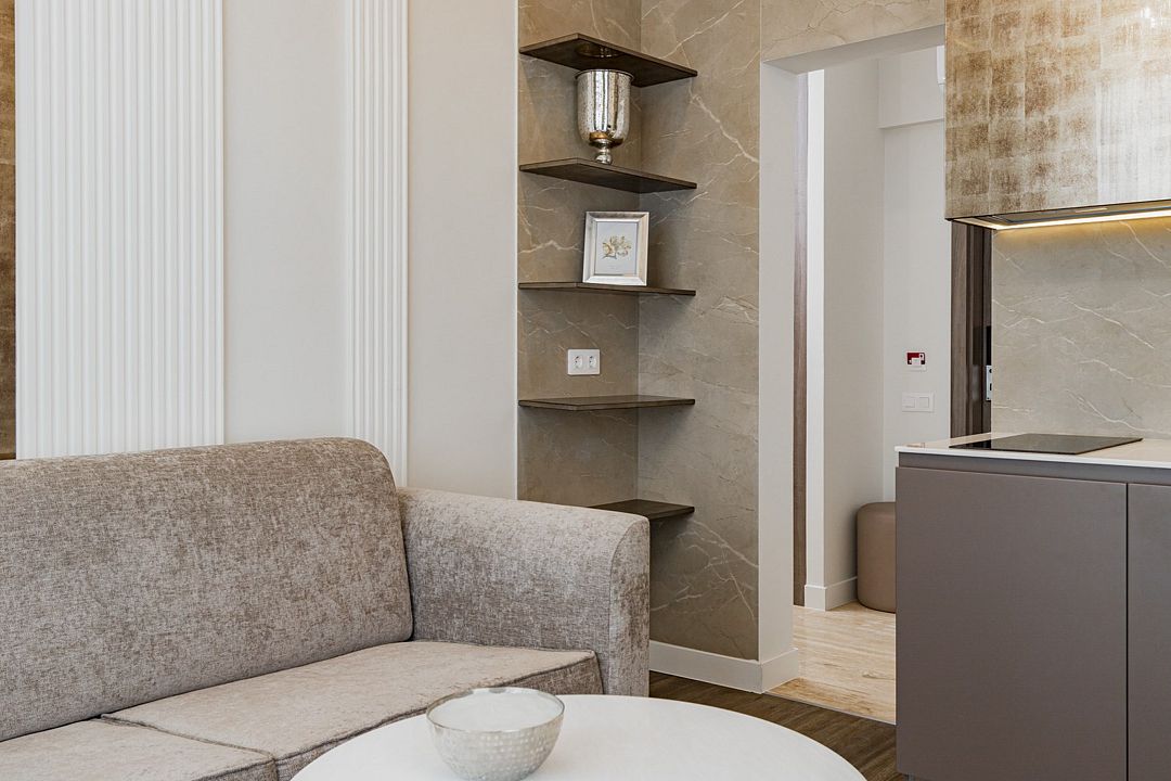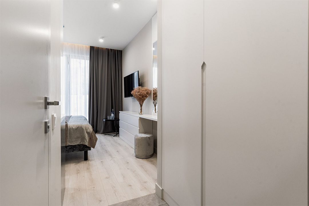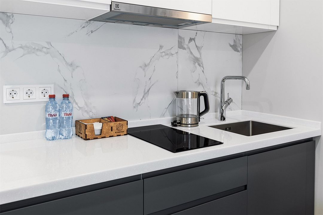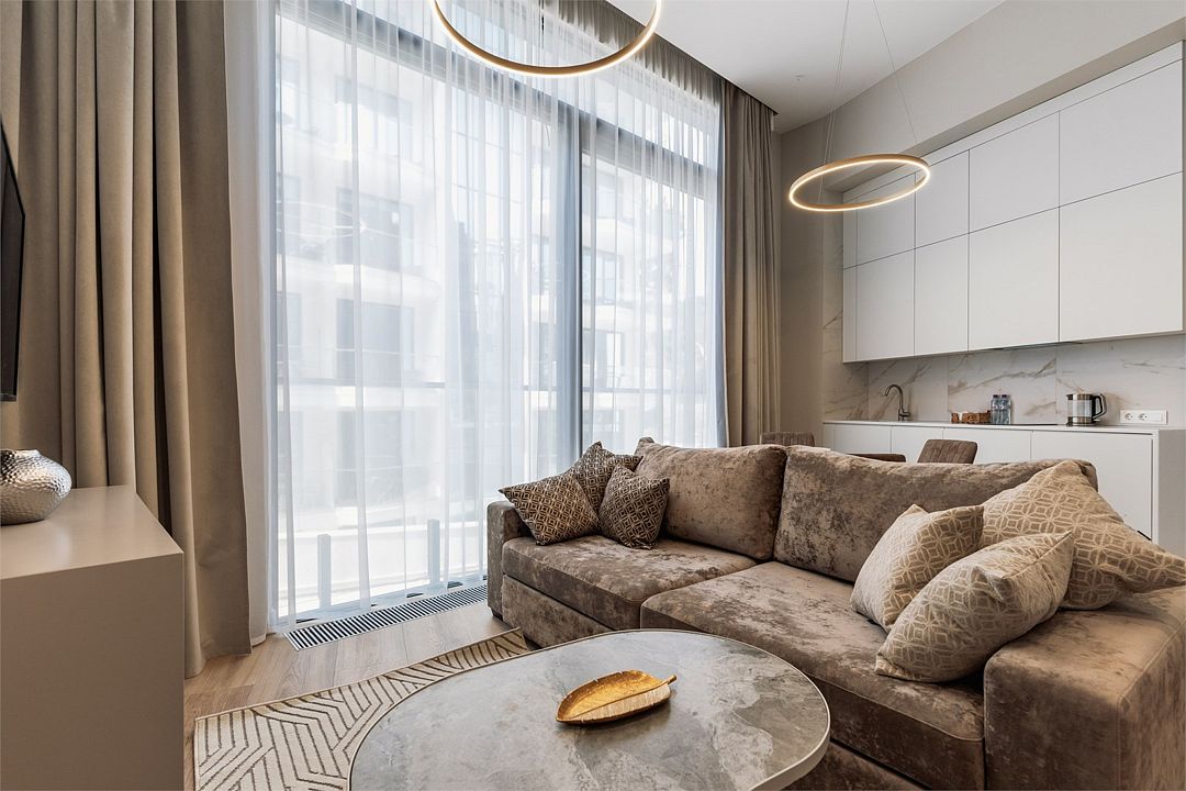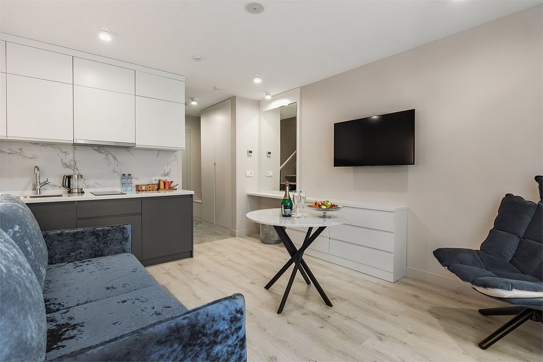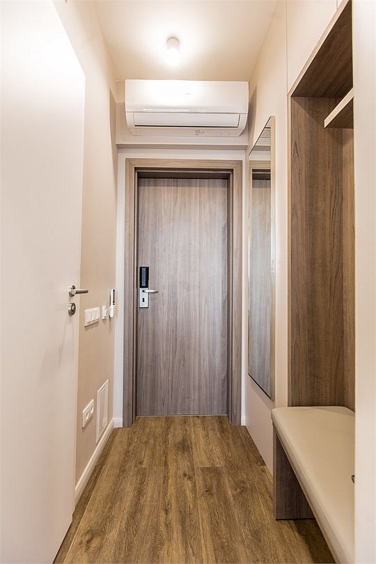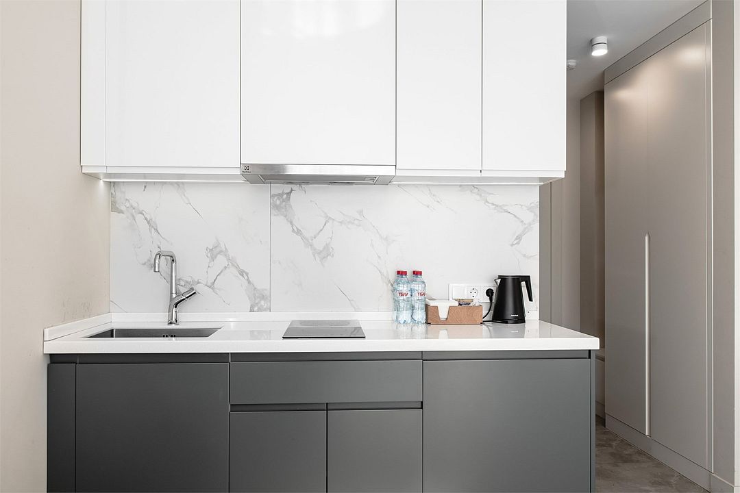 Стильные однокомнатные студии без балкона, площадью 21 м². Минималистичное оформление номеров в светлых тонах и панорамные окна создают располагающую к отдыху уютную атмосферу.