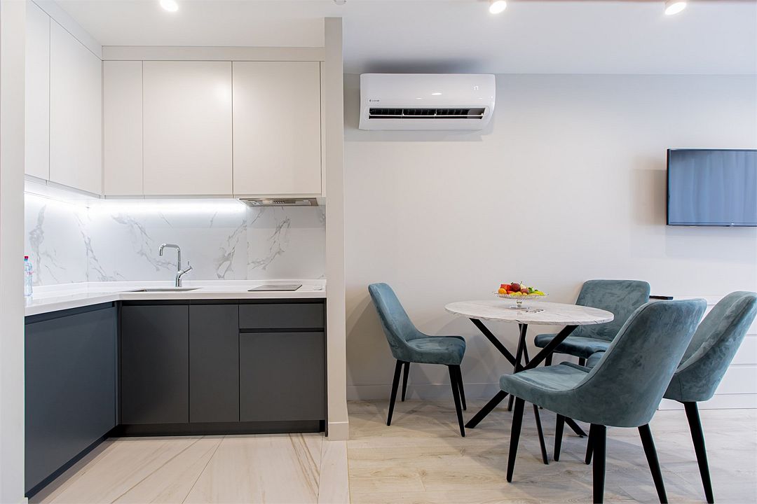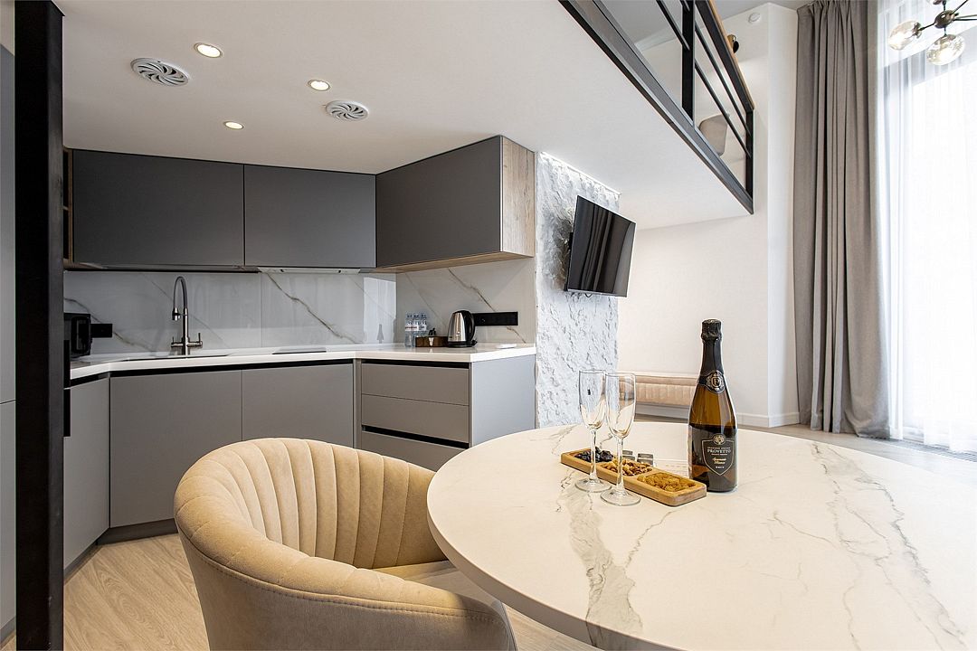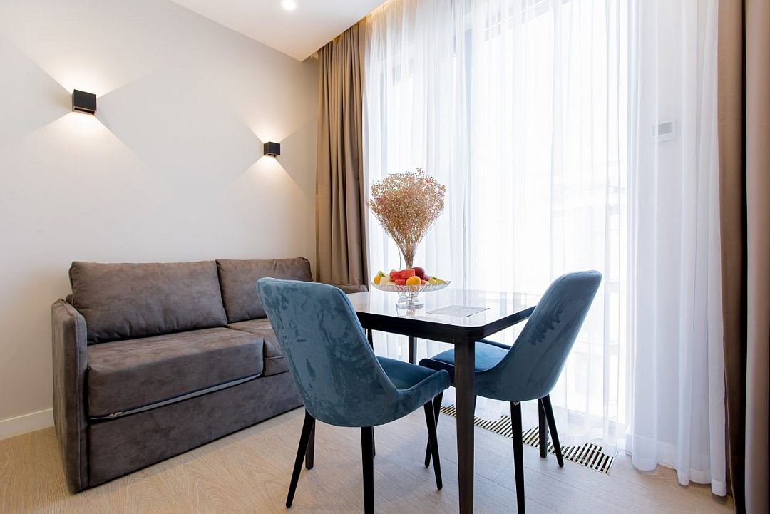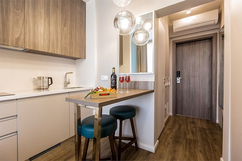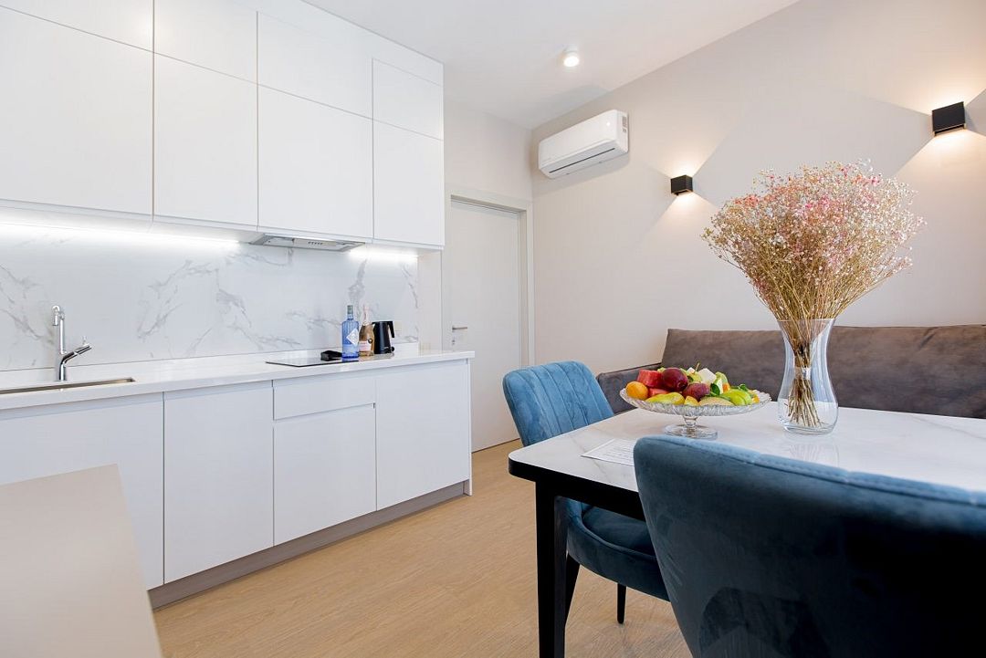 Апартаменты оборудованы мини-кухней, бытовой техникой, комплектом посуды и чайным набором. К услугам гостей халаты, тапочки, пляжные полотенца, набор гигиенических принадлежностей, а также утюг и гладильная доска по запросу. В номерах отеля, как и на всей территории, доступен высокоскоростной Wi-Fi.