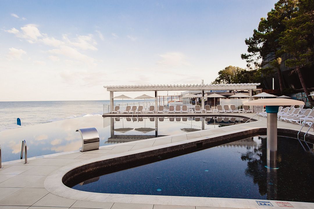 В «Лучезарном Резорте» представлены стильные дизайнерские номера с мини-кухнями, подходящие как для короткого отдыха, так и для длительного проживания. Гости могут насладиться подогреваемыми инфинити-бассейнами и панорамной сауной с захватывающими видами на море. Прогулки по благоустроенным галечным или песочным пляжам, а также по озелененной территории дарят моменты наслаждения природой.