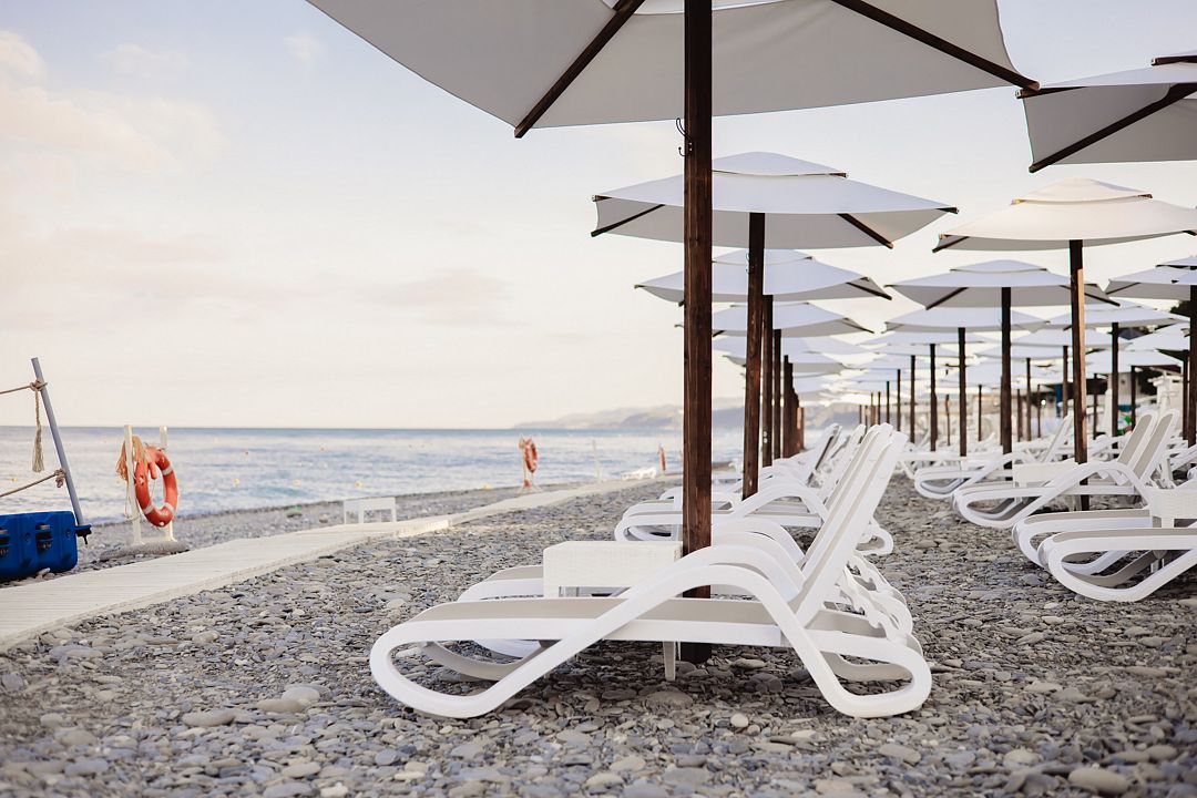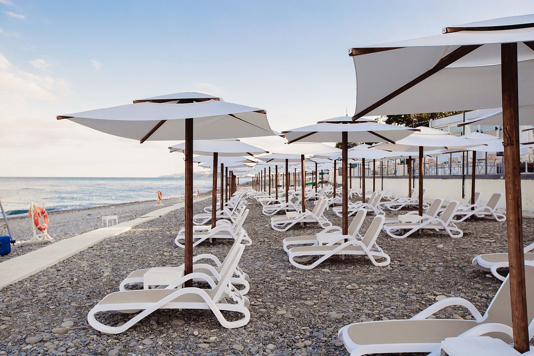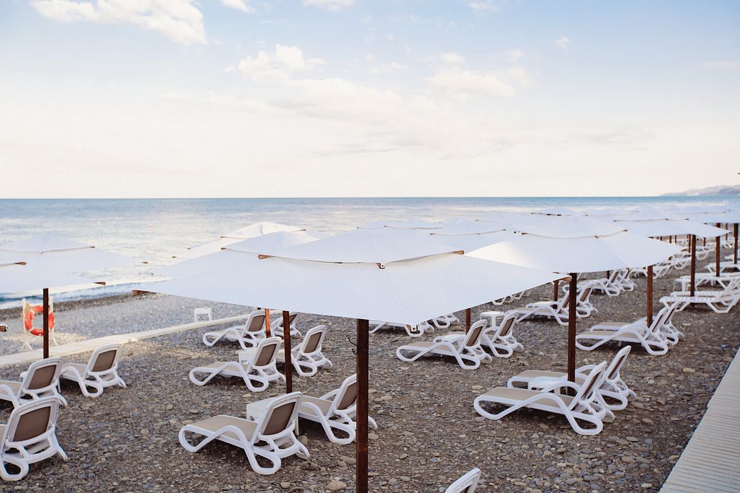 Тип пляжа: галечный, собственный, оборудованныйИнфраструктура: зонтики, шезлонгиРасположение: в пешей доступностиГалечный пляж Апарт-отеля «Лучезарный Резорт» предлагает все условия для комфортного отдыха с зонтиками, шезлонгами, столиками и пляжными пуфами. Пляж открыт в период с 1 июня по 15 октября, причем график работы может изменяться в зависимости от погодных условий. Время работы пляжа — с 08:00 до 20:00.