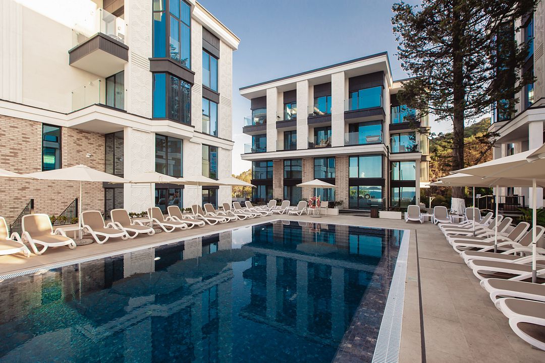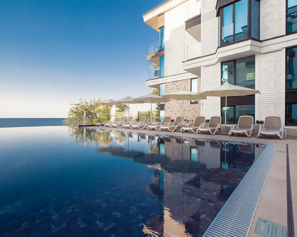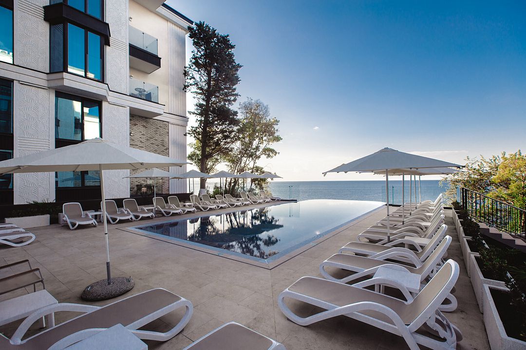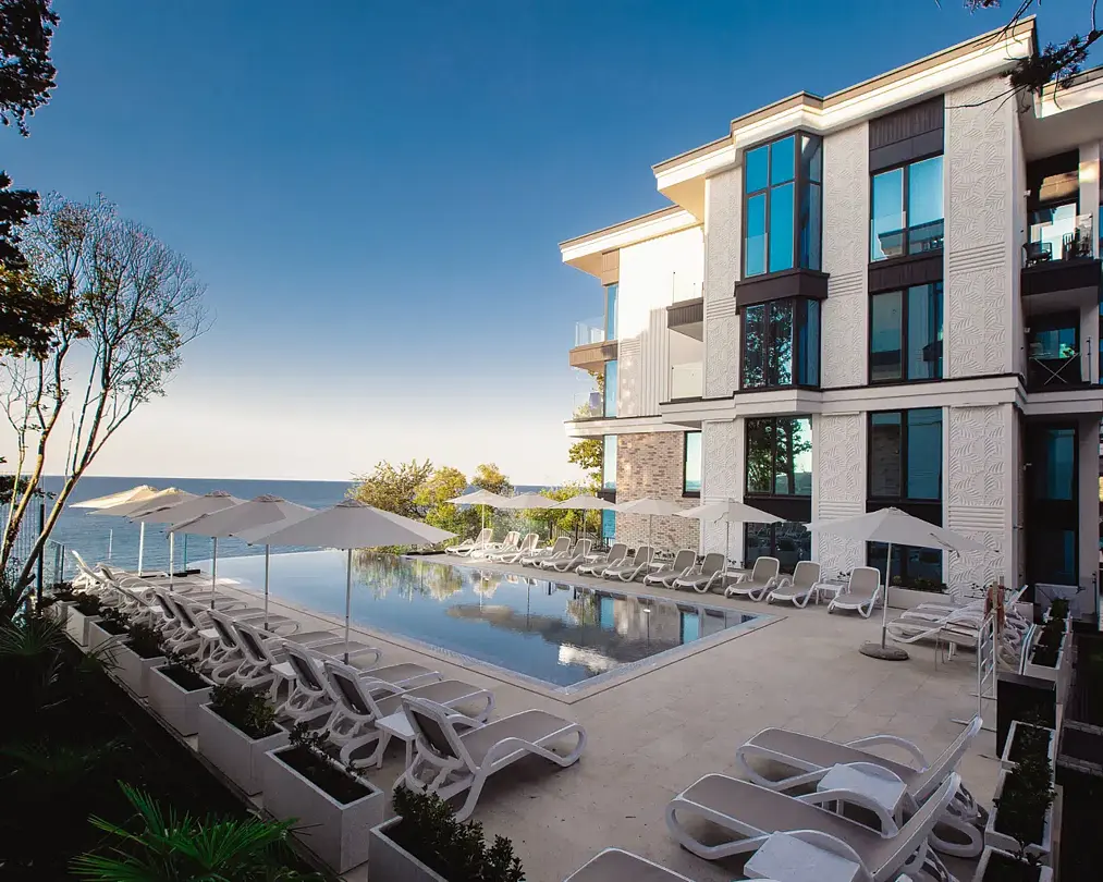 Современный апарт-отель «Лучезарный Резорт» расположен на живописном побережье Черного моря, всего в 30 минутах от центра Сочи. Это идеальное место для тех, кто ищет уединение и спокойствие вдали от городской суеты. Отель предлагает атмосферу умиротворения, где каждый элемент создан для комфорта и расслабления гостей.