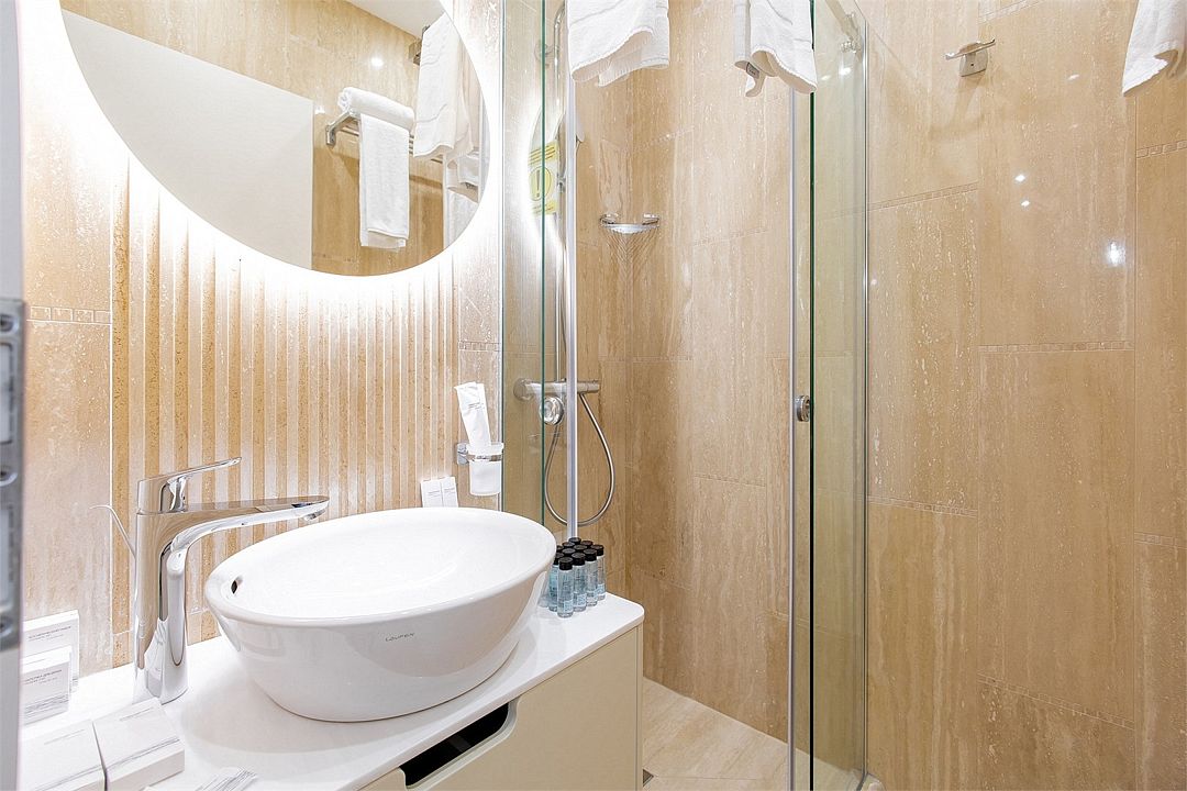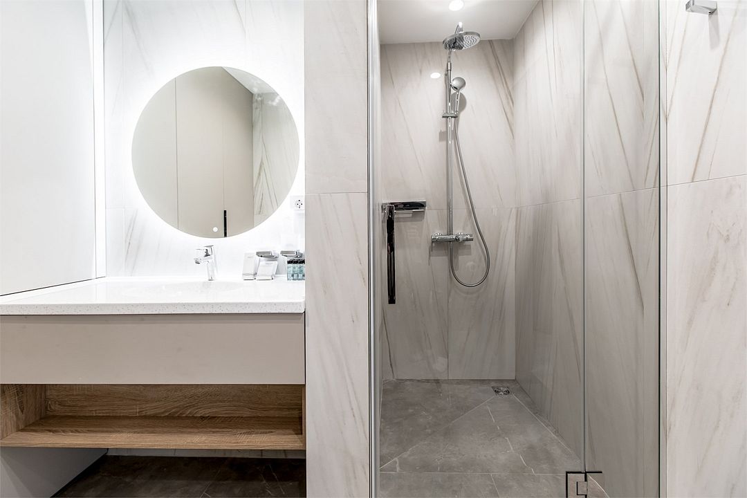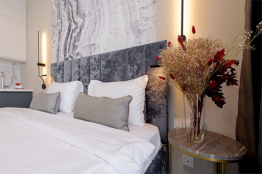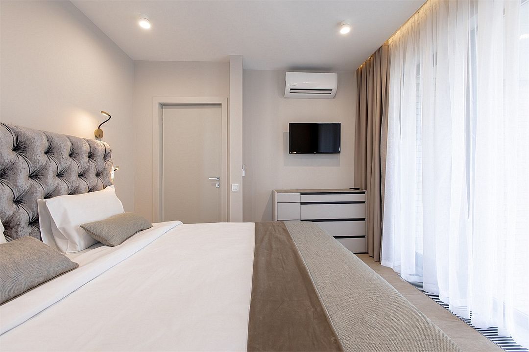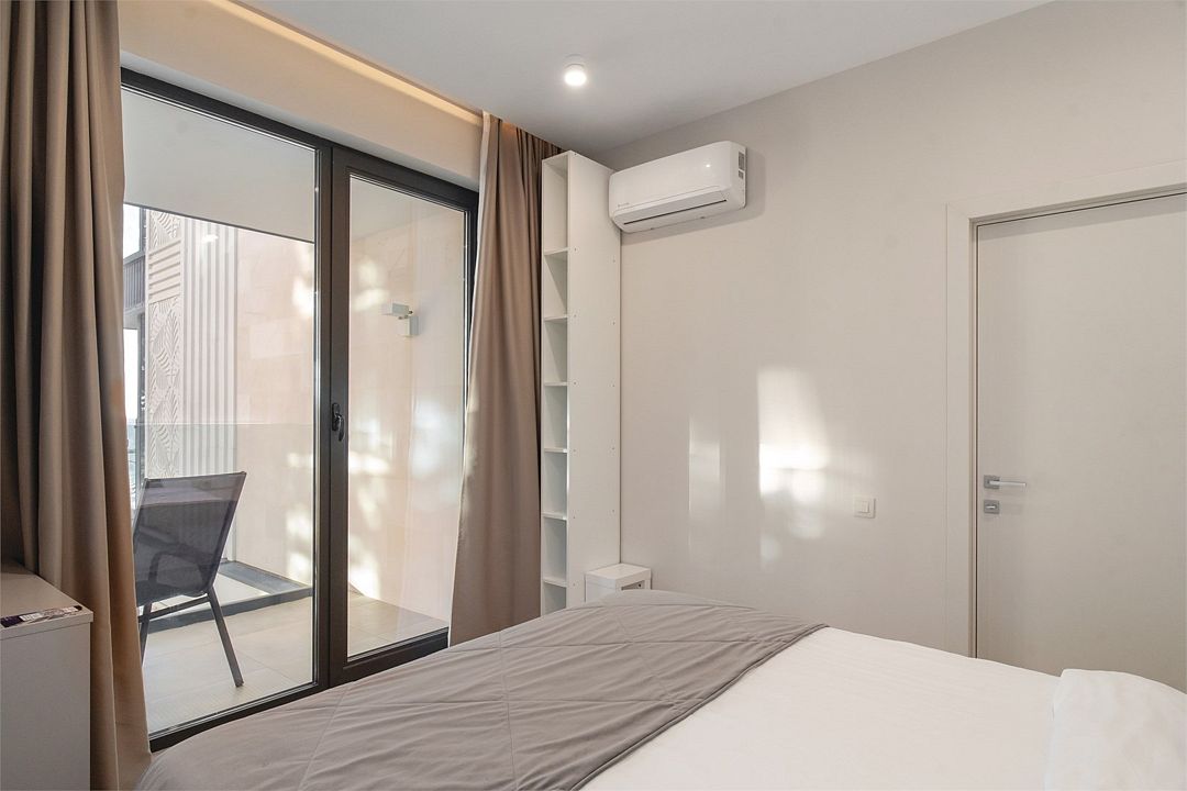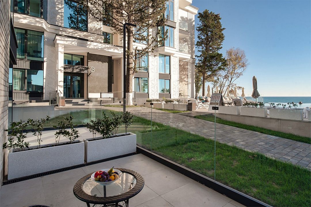Стильные однокомнатные апартаменты площадью 21 м² отличаются современным и эргономичным дизайном. Панорамные окна и балкон с боковым видом на море создают неповторимую атмосферу, позволяя в полной мере насладиться отдыхом на побережье. Номера располагаются в главном корпусе на втором этаже и выше, а также в новом корпусе номер четыре.