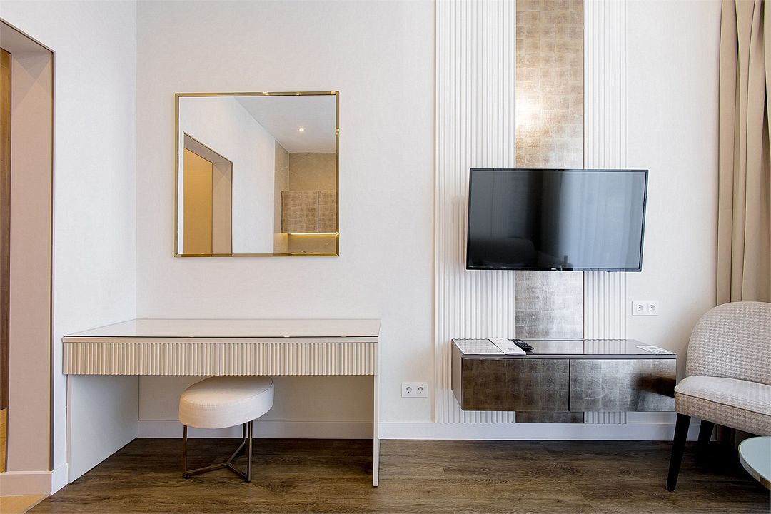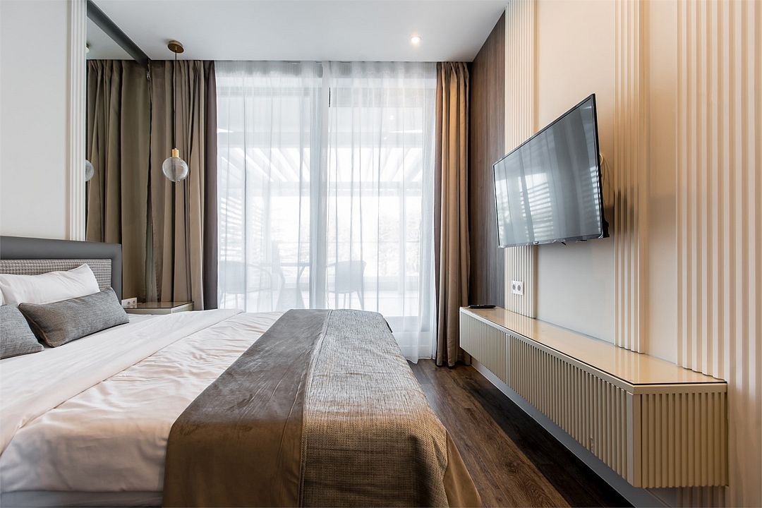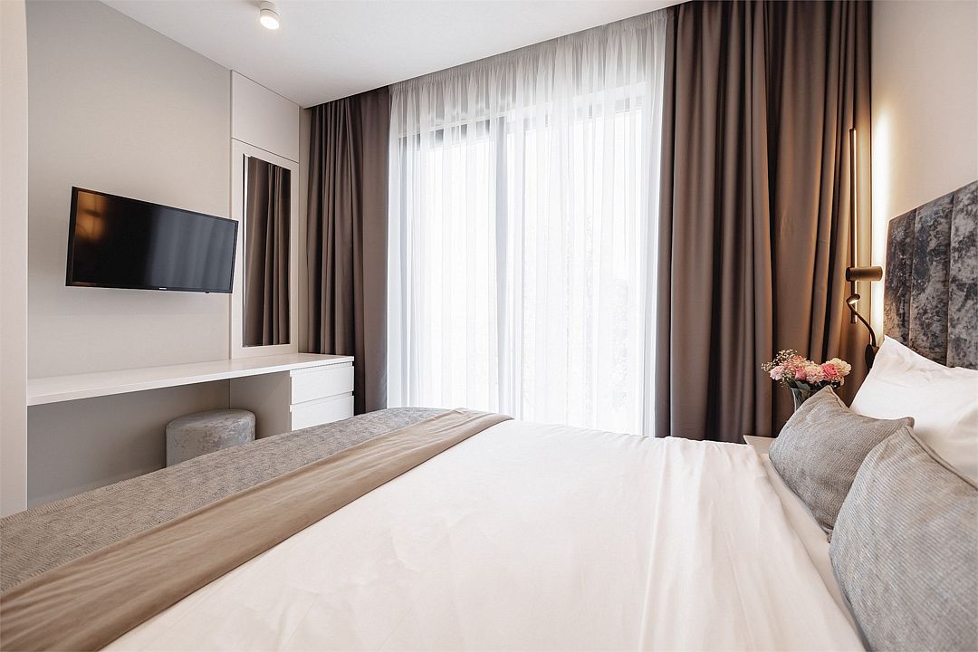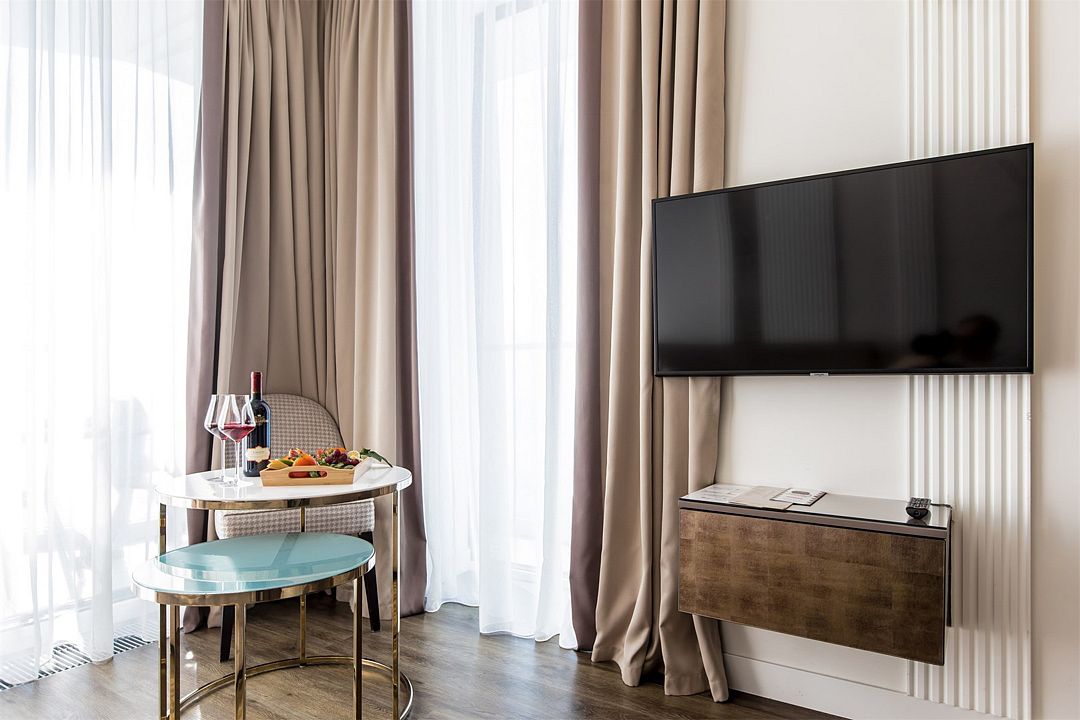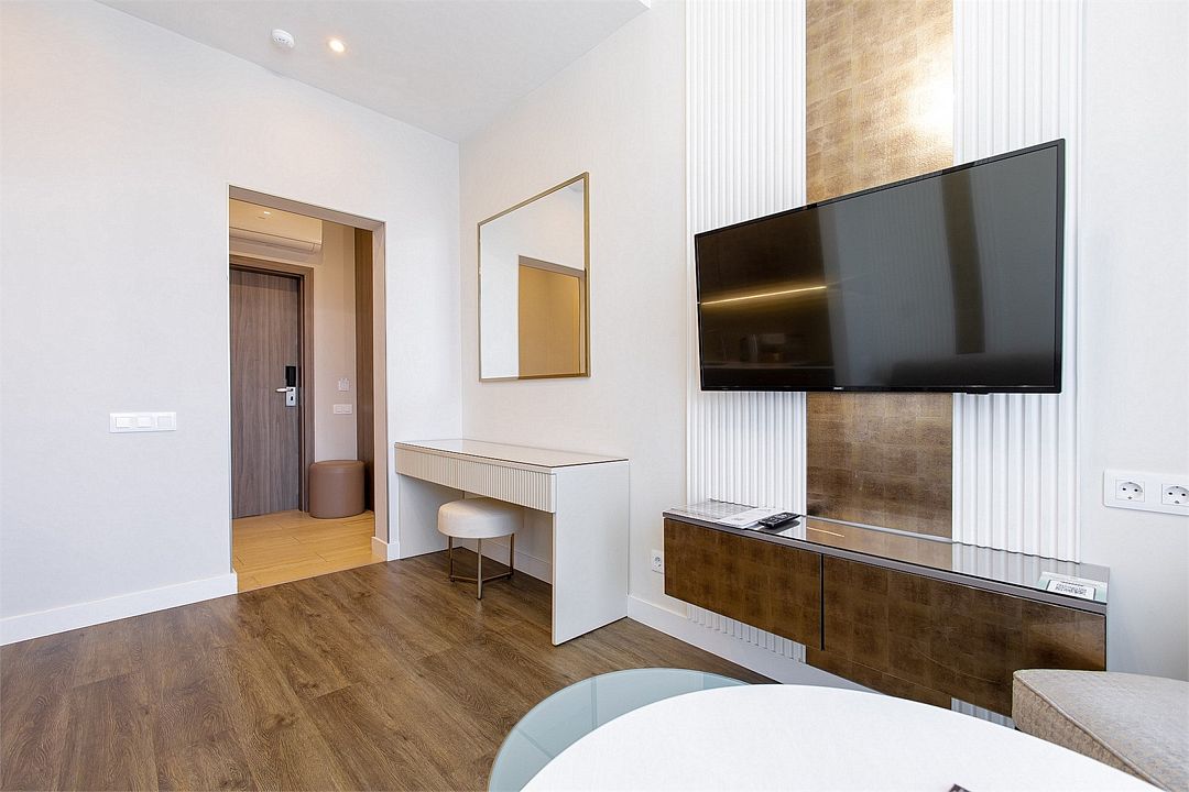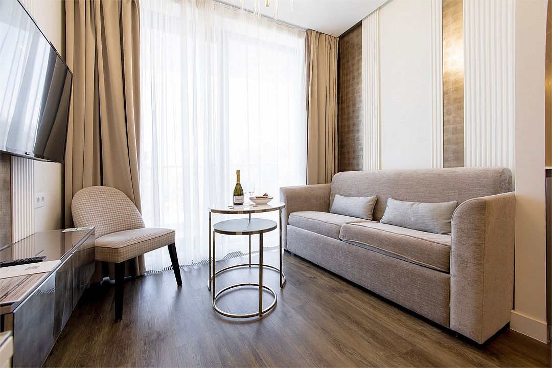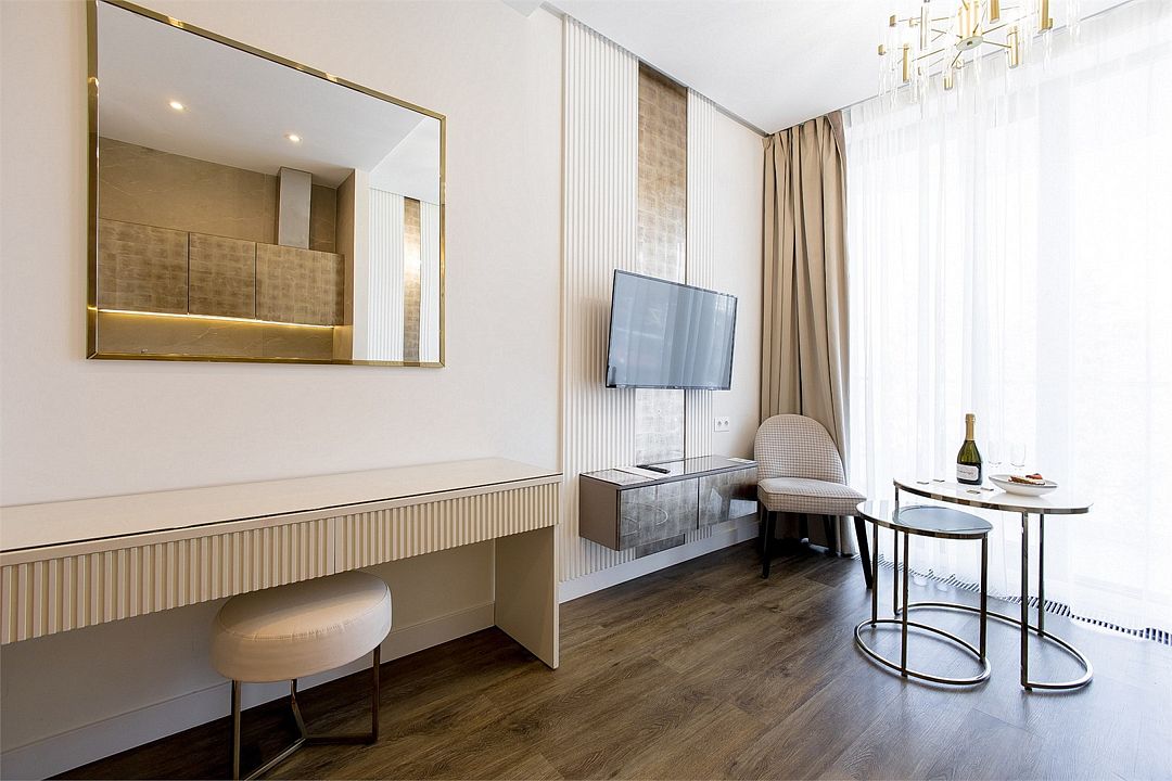 Двухкомнатный апартамент категории Люкс отличается уникальным дизайном и стильным интерьером и идеально подходит для семейного пребывания и ценителей повышенного комфорта.