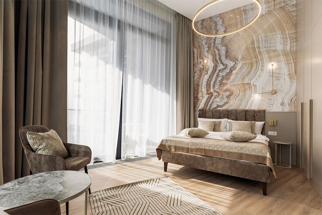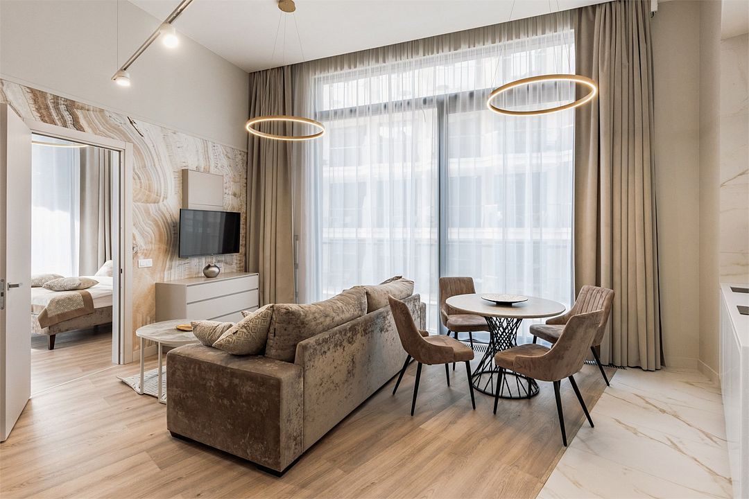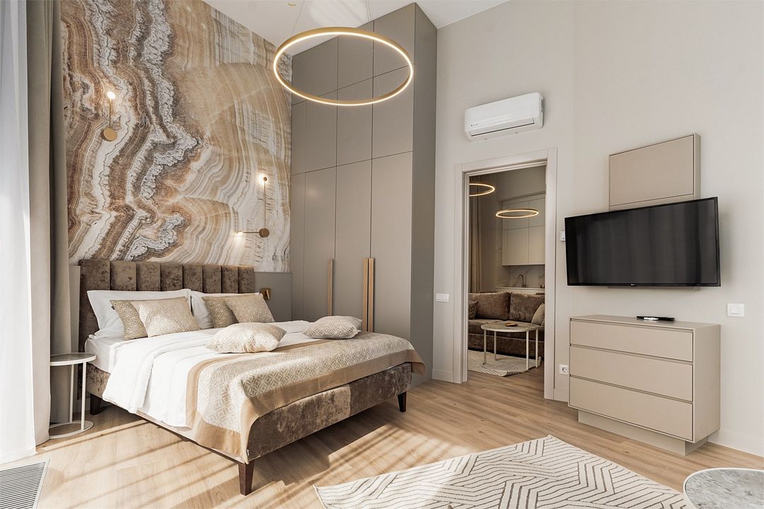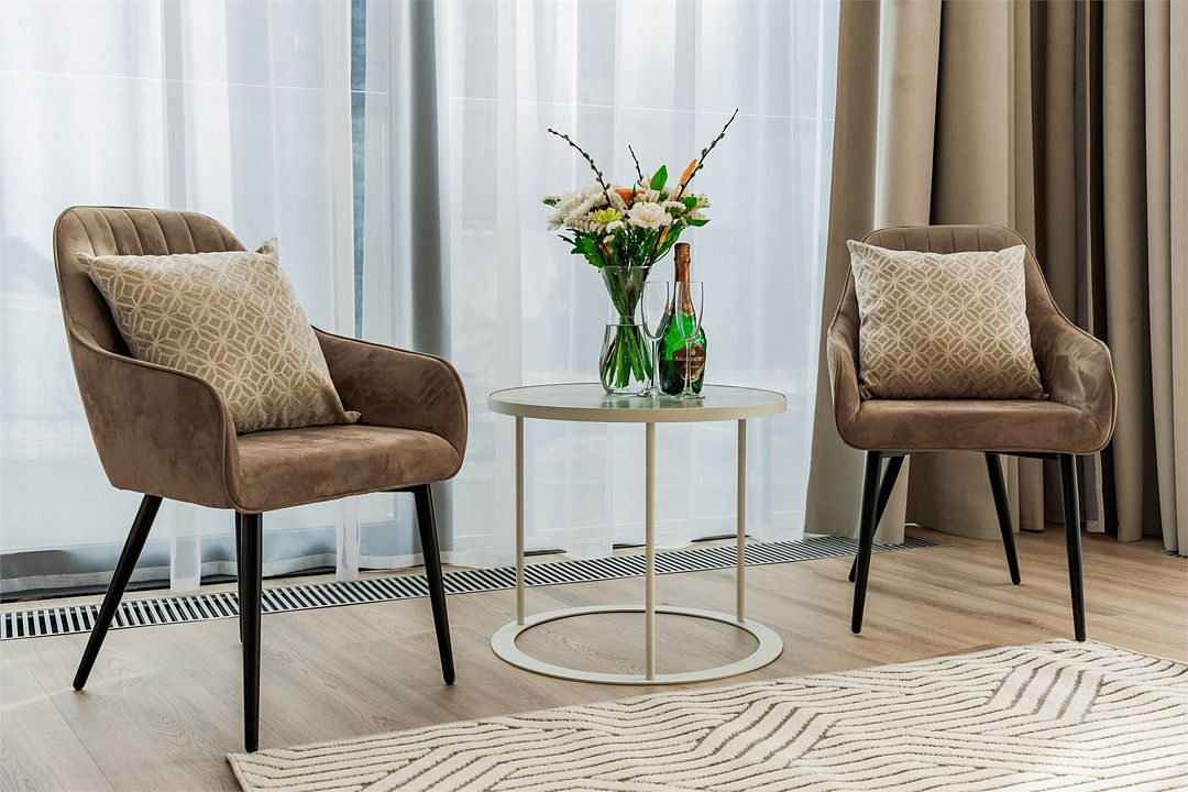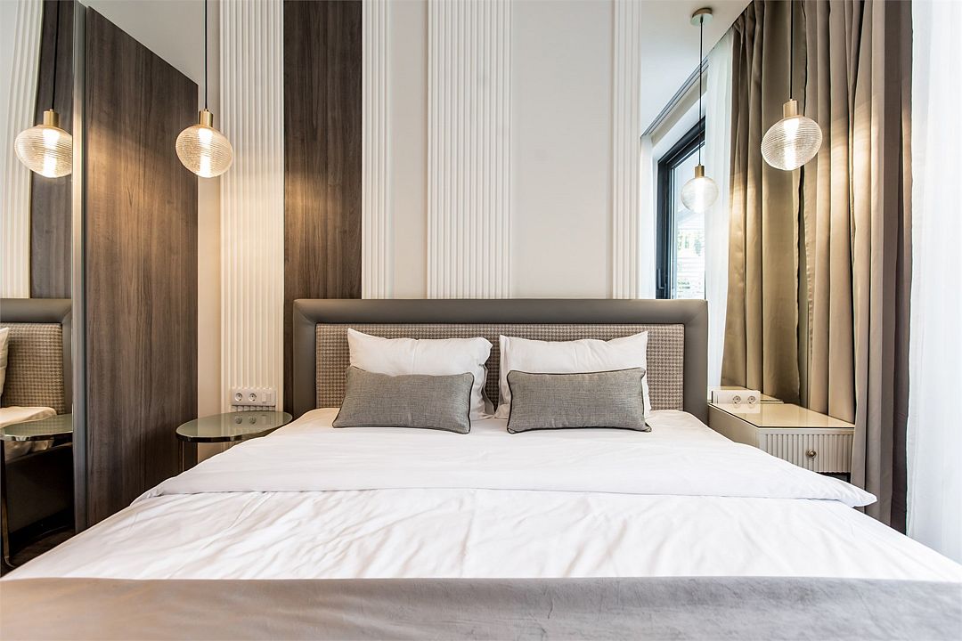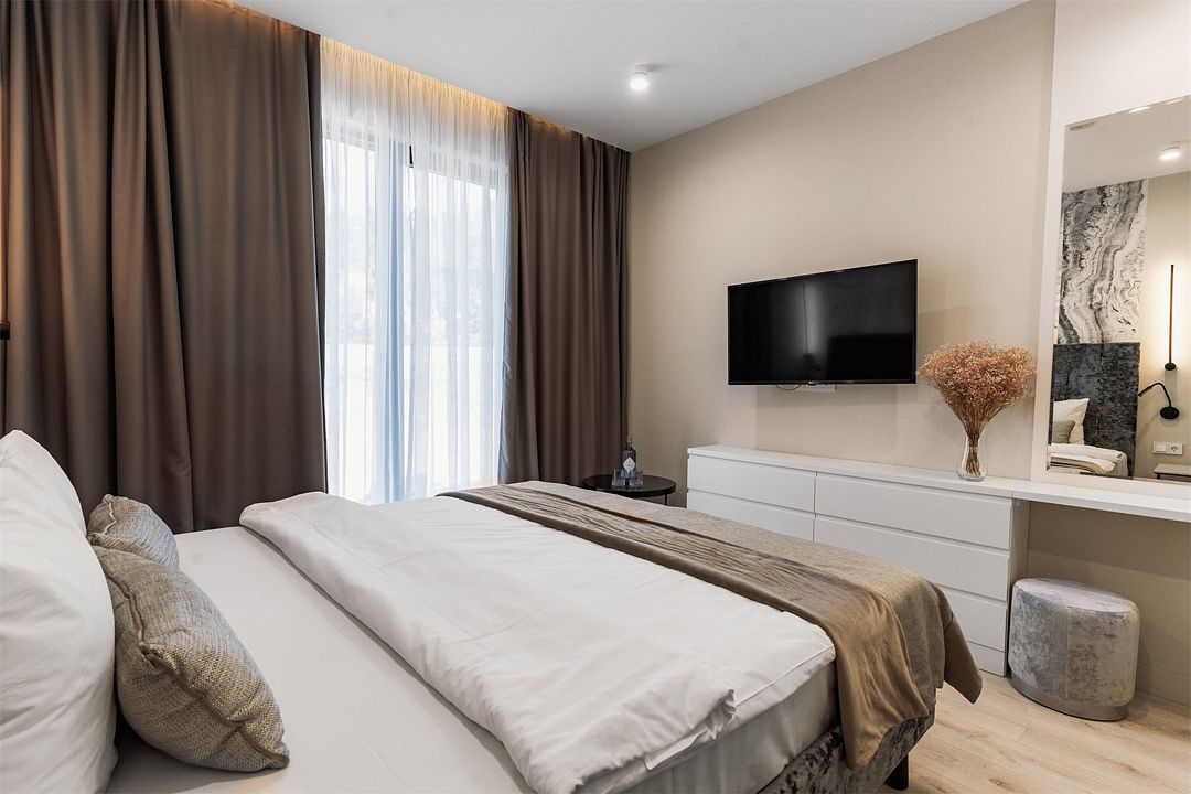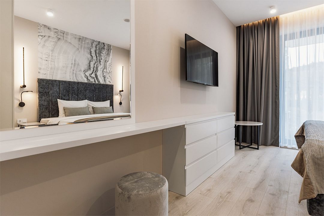 Двухкомнатный апартамент категории Люкс отличается уникальным дизайном и стильным интерьером и идеально подходит для семейного пребывания и ценителей повышенного комфорта.