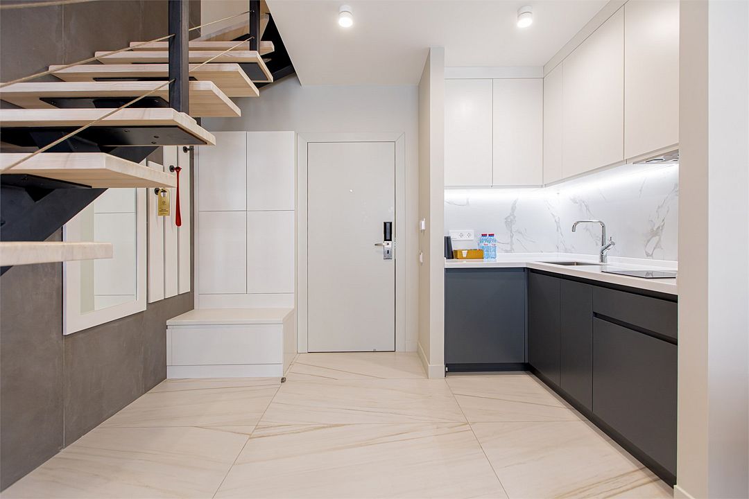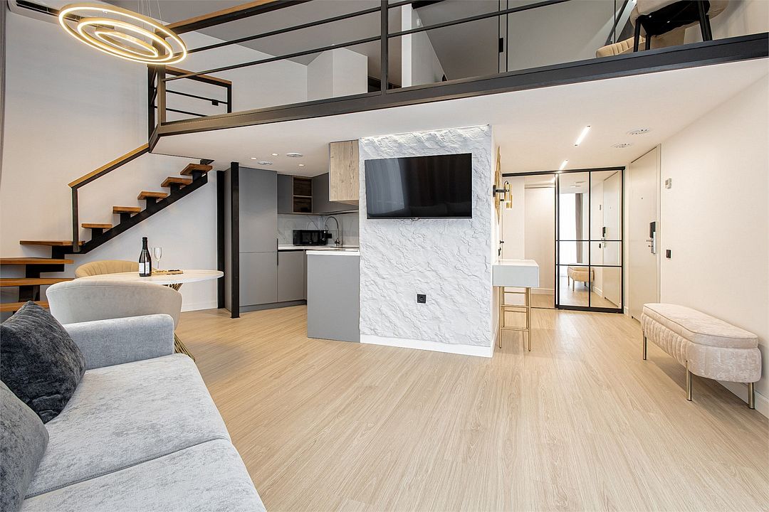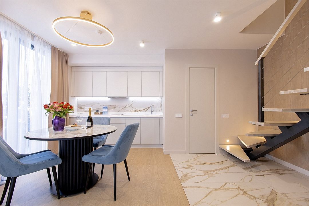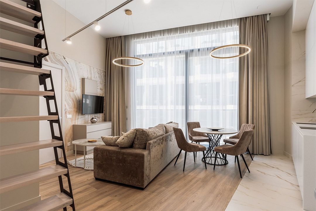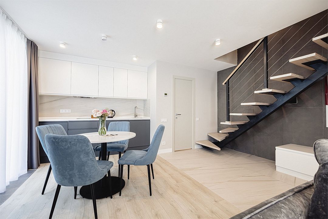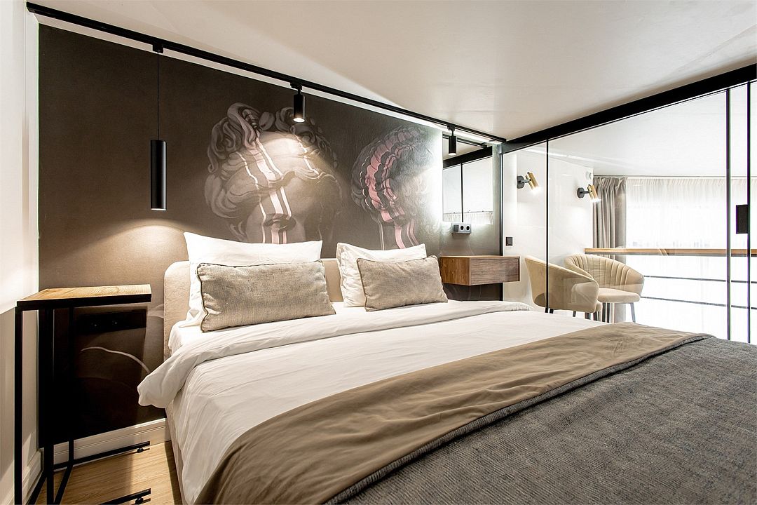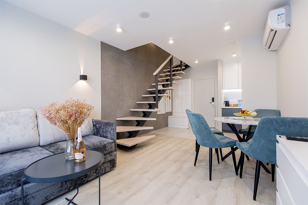 Двухэтажные стильные апартаменты категории Дуплекс джуниор идеально подходят для семейного размещения или отдыха повышенной комфортности. Панорамные окна и балкон, создают неповторимую атмосферу. Обратите внимание, высота потолков на втором этаже 190 см.