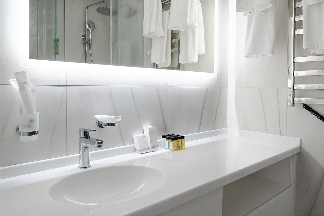 Каждый номер оборудован всем необходимым для комфортного отдыха: полностью оборудованная мини-кухня, мягкая мебель из велюра, система кондиционирования и встроенного отопления, LCD-телевизор с цифровыми каналами и радио, фен, сейф, высокоскоростной Wi-Fi и косметический набор, а также окна и двери с повышенной звукоизоляцией.