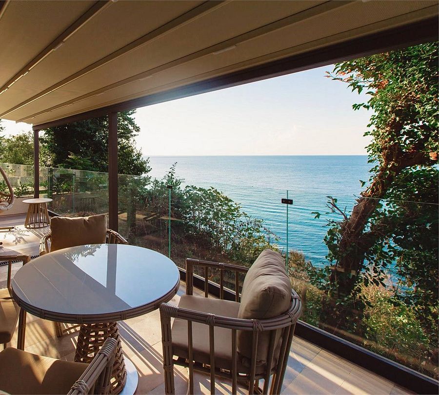 Панорамная сауна с видом на море