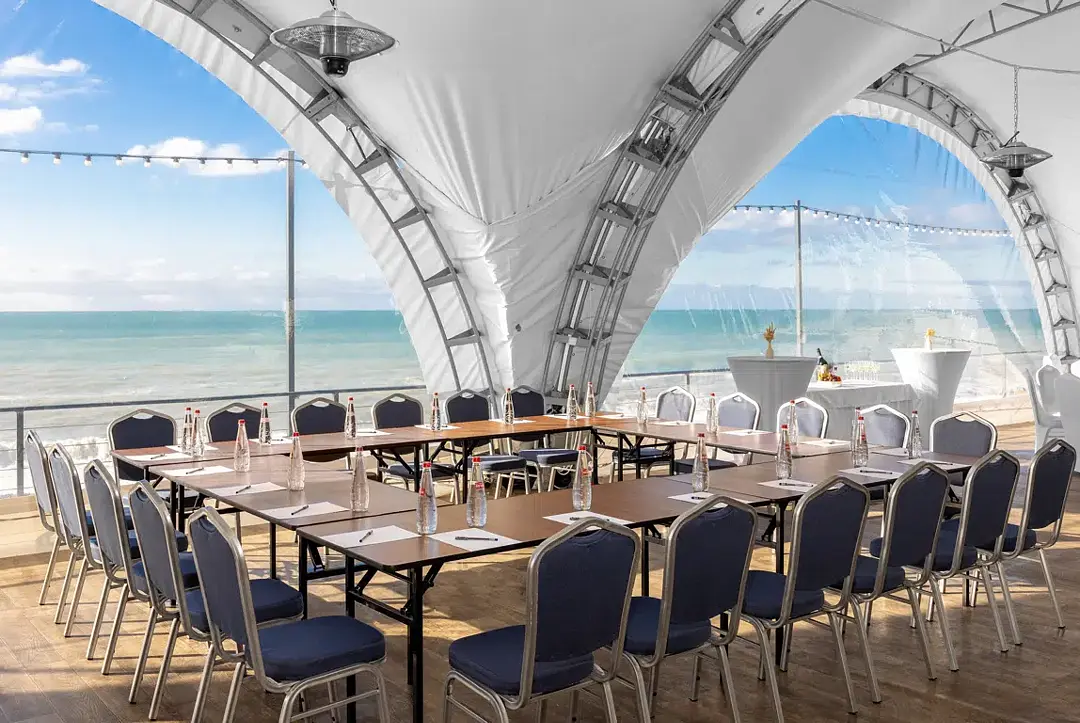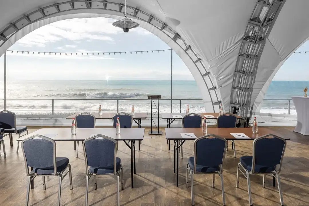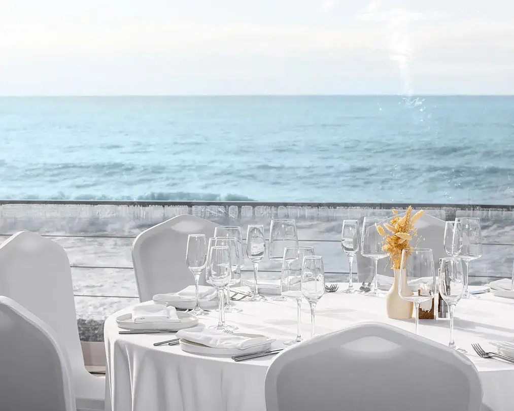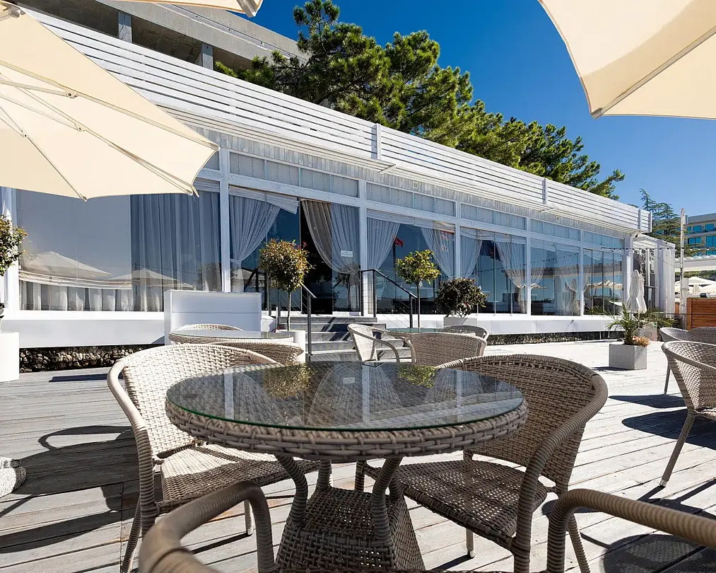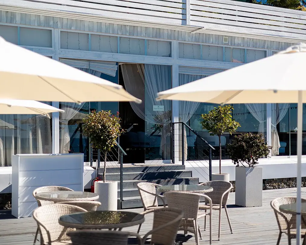 Веранда ресторана «Ля Сибас» предлагает великолепное пространство с панорамными окнами, открывающими захватывающий вид на море. Это идеальное место для организации мероприятий различного формата — от масштабных праздников до корпоративных встреч и конференций. Атмосфера, созданная морскими просторами, придаст вашему событию уникальность и запомнится надолго.