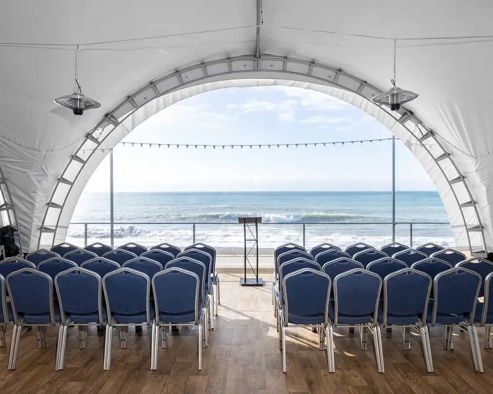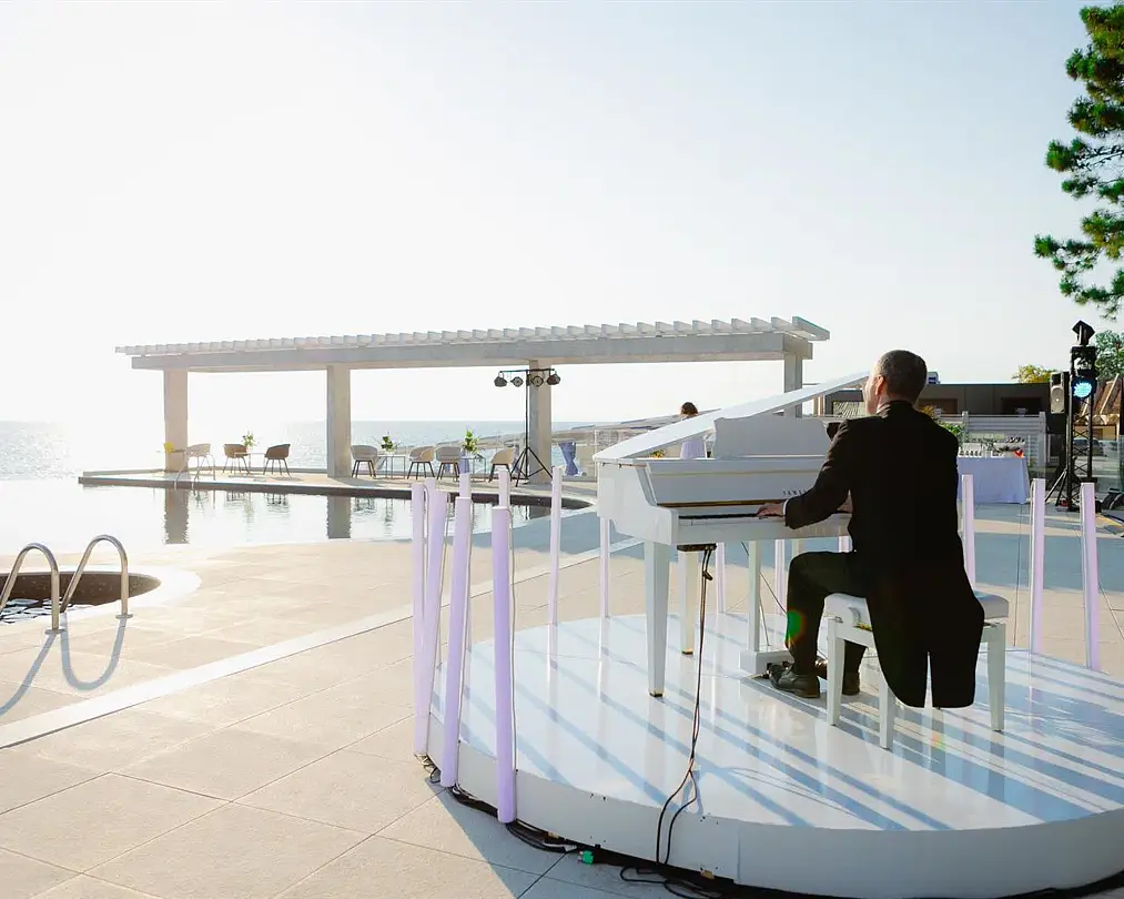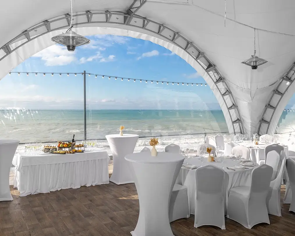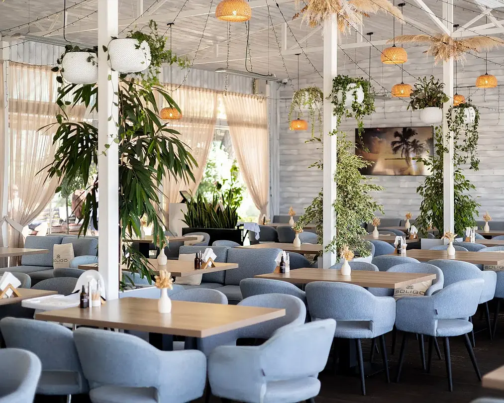 Веранда ресторана «Ля Сибас» предлагает великолепное пространство с панорамными окнами, открывающими захватывающий вид на море. Это идеальное место для организации мероприятий различного формата — от масштабных праздников до корпоративных встреч и конференций. Атмосфера, созданная морскими просторами, придаст вашему событию уникальность и запомнится надолго.