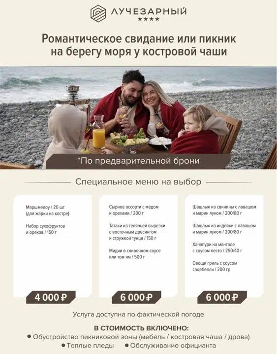 Требуется предварительное бронирование.Для гостей "Лучезарный Резорт" предоставляется бесплатный трансфер в Лоо Арена
