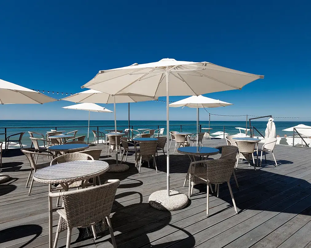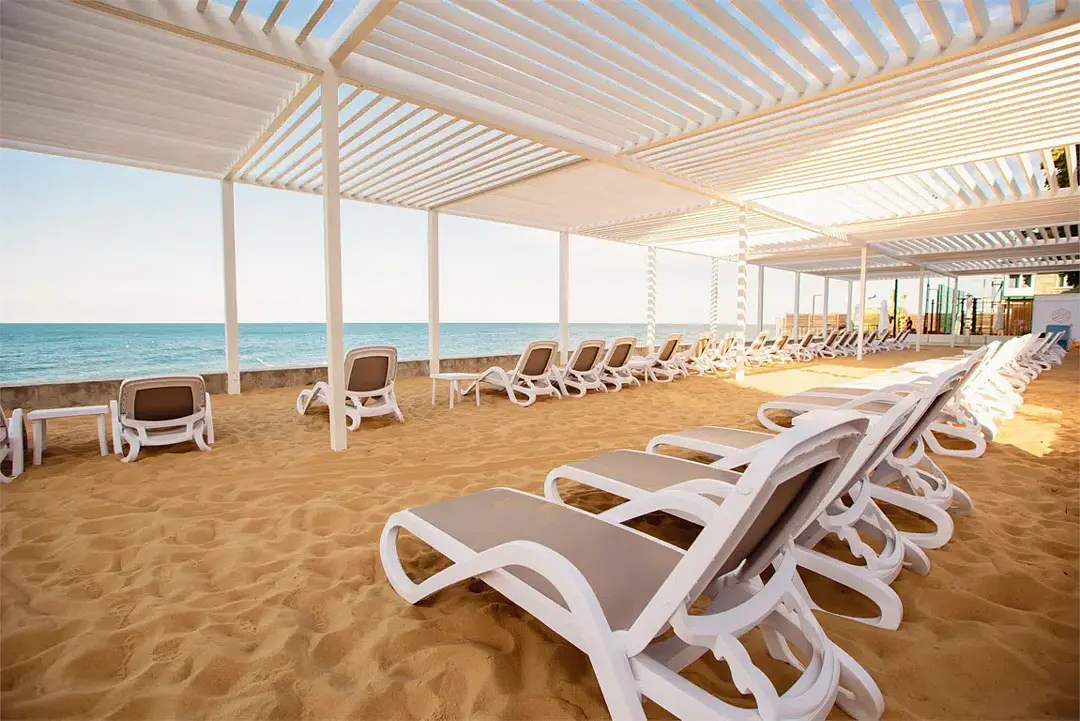 Читать полностьюГостей ждет великолепный песчаный пляж, оснащенный стильными итальянскими шезлонгами и уютными теневыми навесами. Пляж открыт с 1 июня по 15 октября, предоставляя идеальное место для отдыха и наслаждения солнцем, с возможностью расслабиться с 08:00 до 20:00. Режим работы может варьироваться в зависимости от погодных условий, что позволяет создать комфортные условия для каждого посетителя.